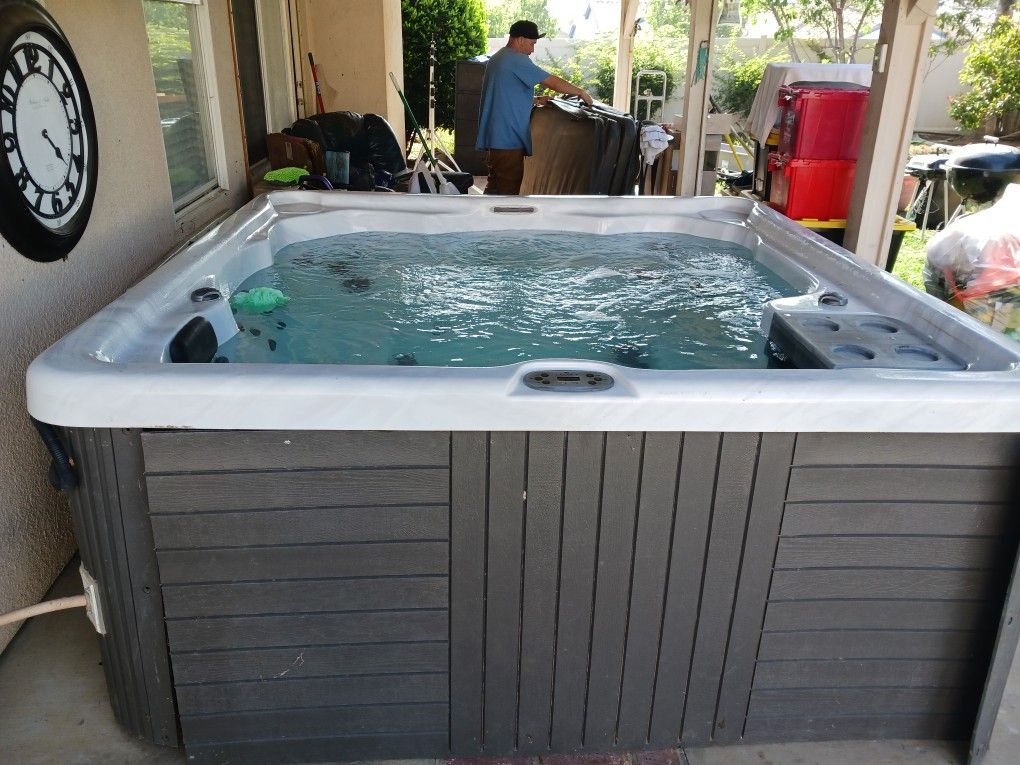 84×84×36 Weight 4670 full /805 Gallons 330 Power 240/50 amps Seating 6 jets 41 Water features 1 water fall Filtation ECO pur chage Model# 3500