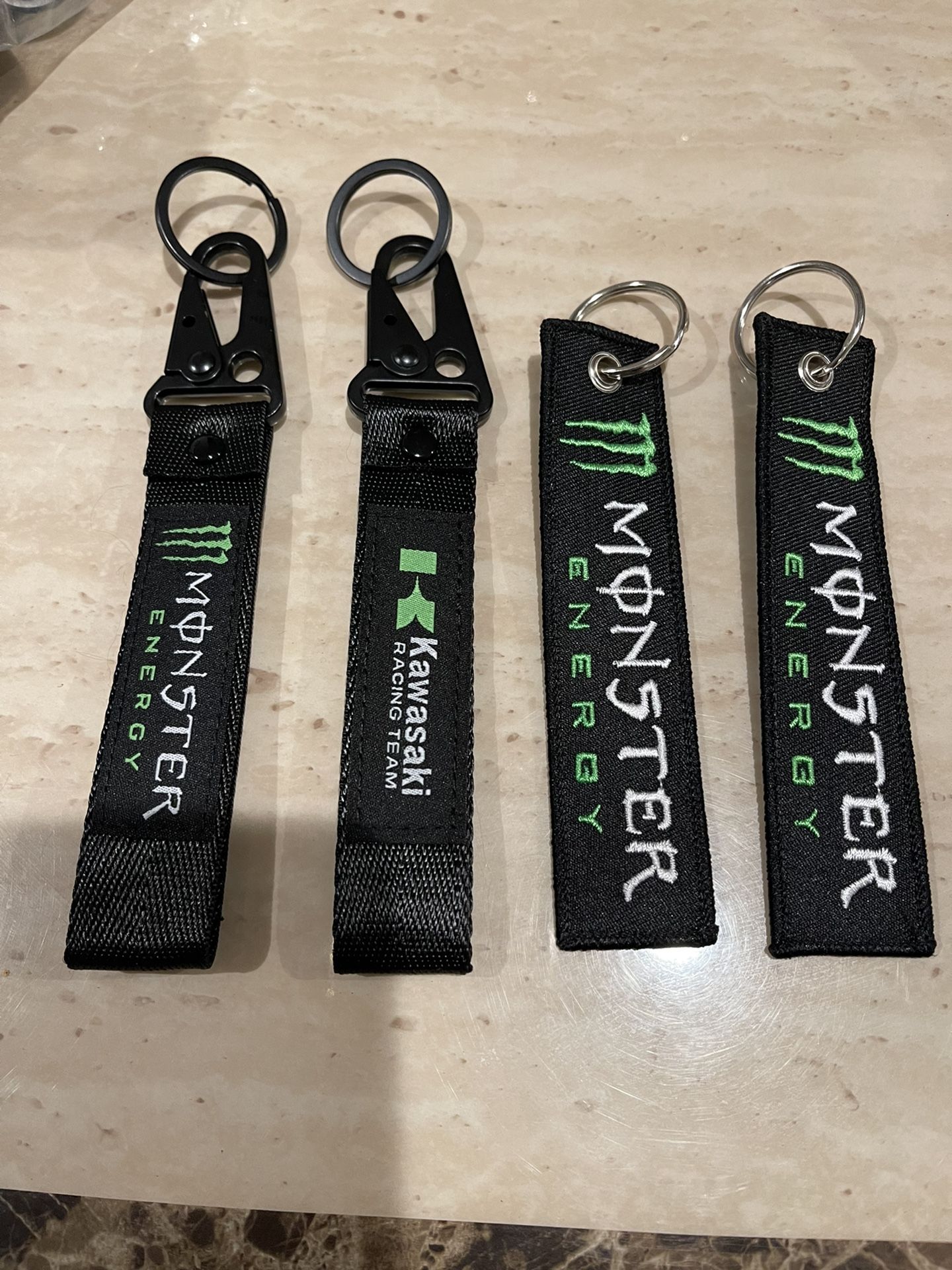 A very delicate keychain. A piece of the white metal ring is $8, and the black one is $10.