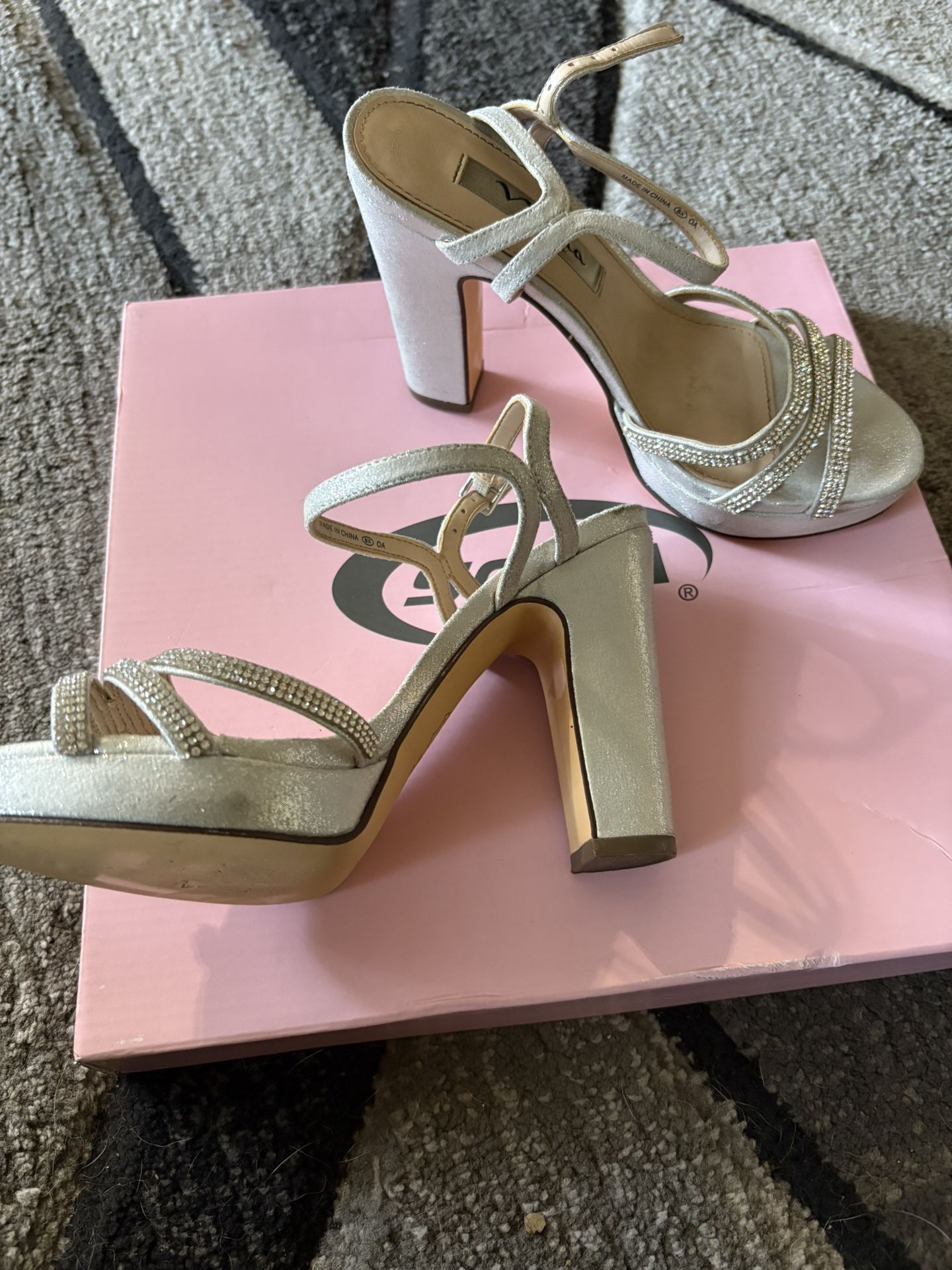 Cute silver heels, worn once. Little scuffed underneath but in good condition Women’s 6