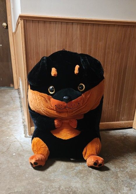 A stuffed animal Rottweiler.