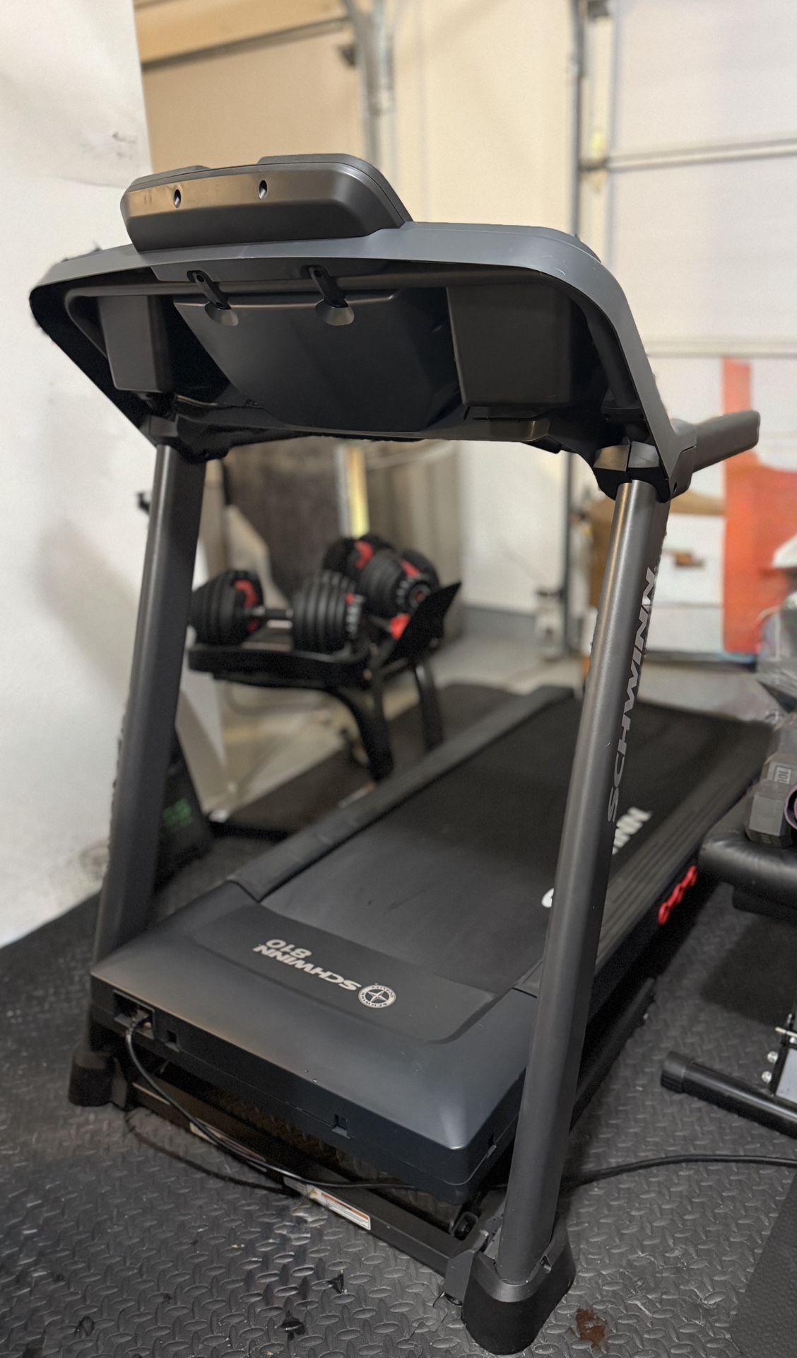 Schwinn 810 Treadmill with backlit LCD screen, 16 intuitive workout programs, a 20” x 55” running path, and folding design for easy storage, sync to Explore The World app Dimensions (Overall): 56.7 Inches (H) x 35.6 Inches (W) x 69.1 Inches (D) Weight 155lbs Holds up to 275lbs