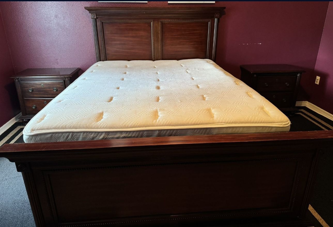 Included: mattress, spring box, two nightstands, dresser + mirror. Usual wear and tear. Pick up only.