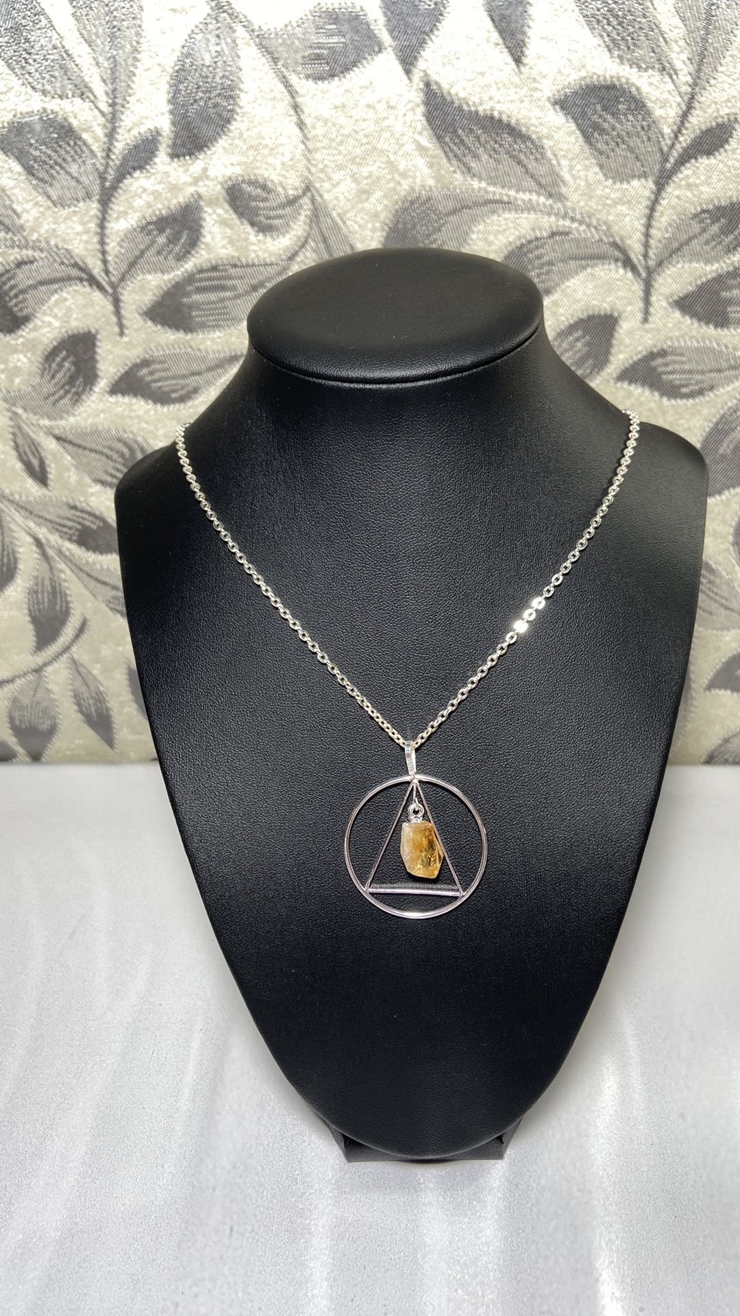 Amethyst pendant yellow color / silver plated chain approximate measurements can be seen in the photos Amethyst is a powerful and protective stone, known for its calming energy. It enhances spiritual awareness and intuition, promoting clarity of thought and emotional balance. Amethyst is associated with the crown chakra, facilitating a deeper connection to higher realms and promoting meditation. It is believed to alleviate stress, anxiety, and negative thoughts while encouraging inner peace and tranquility. Many use amethyst for emotional healing, fostering compassion, and supporting personal growth. Chevron Amethyst (pendant), also known as Dogtooth Amethyst, combines the properties of both amethyst and quartz. Its distinctive banding enhances the protective qualities of regular amethyst while amplifying spiritual awareness.