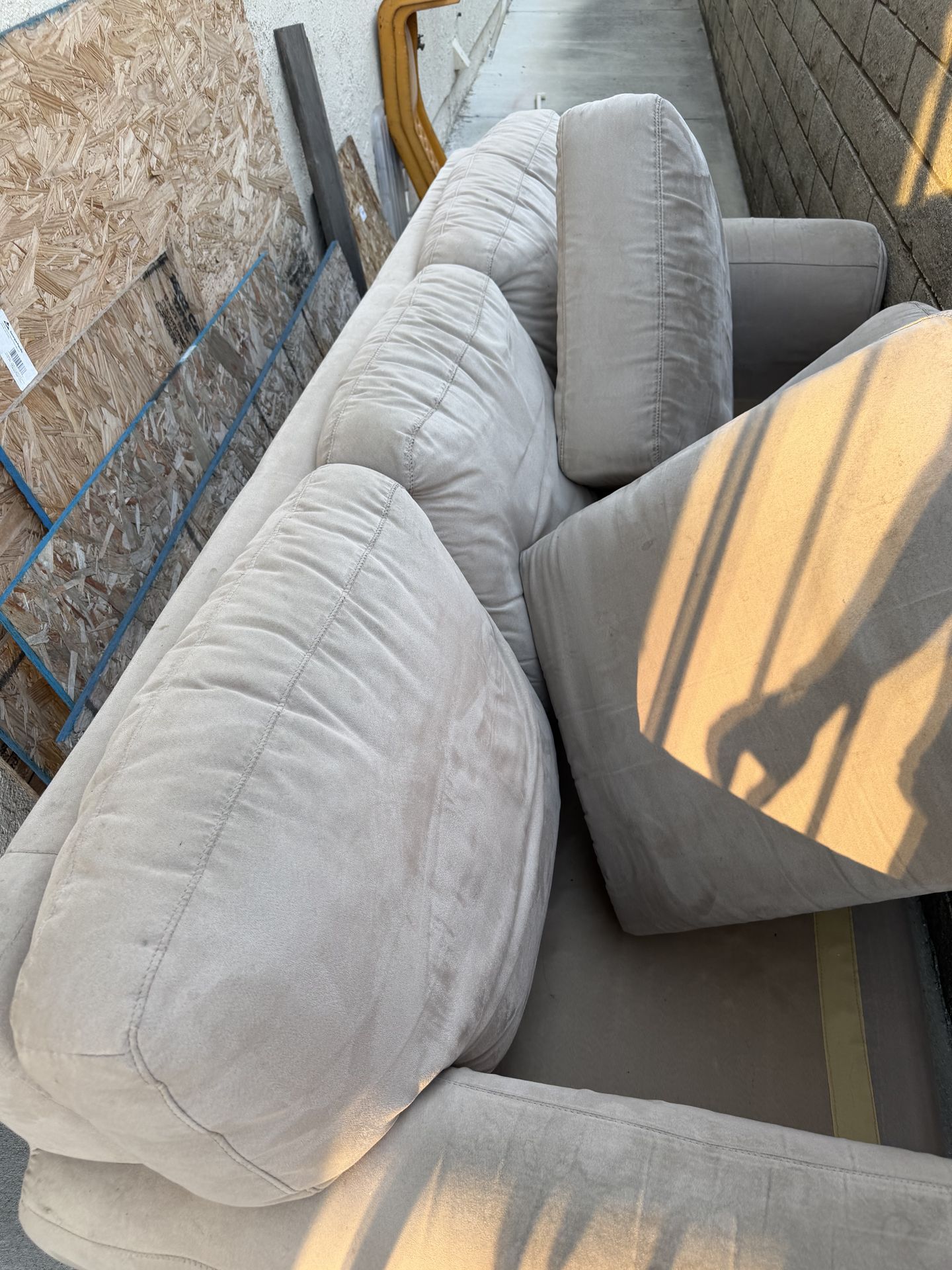 Couch for sale. Needs some cleaning but still in good condition. Very heavy. I believe micro fiber material that needs to be cleaned Need to pick up $100 OBO