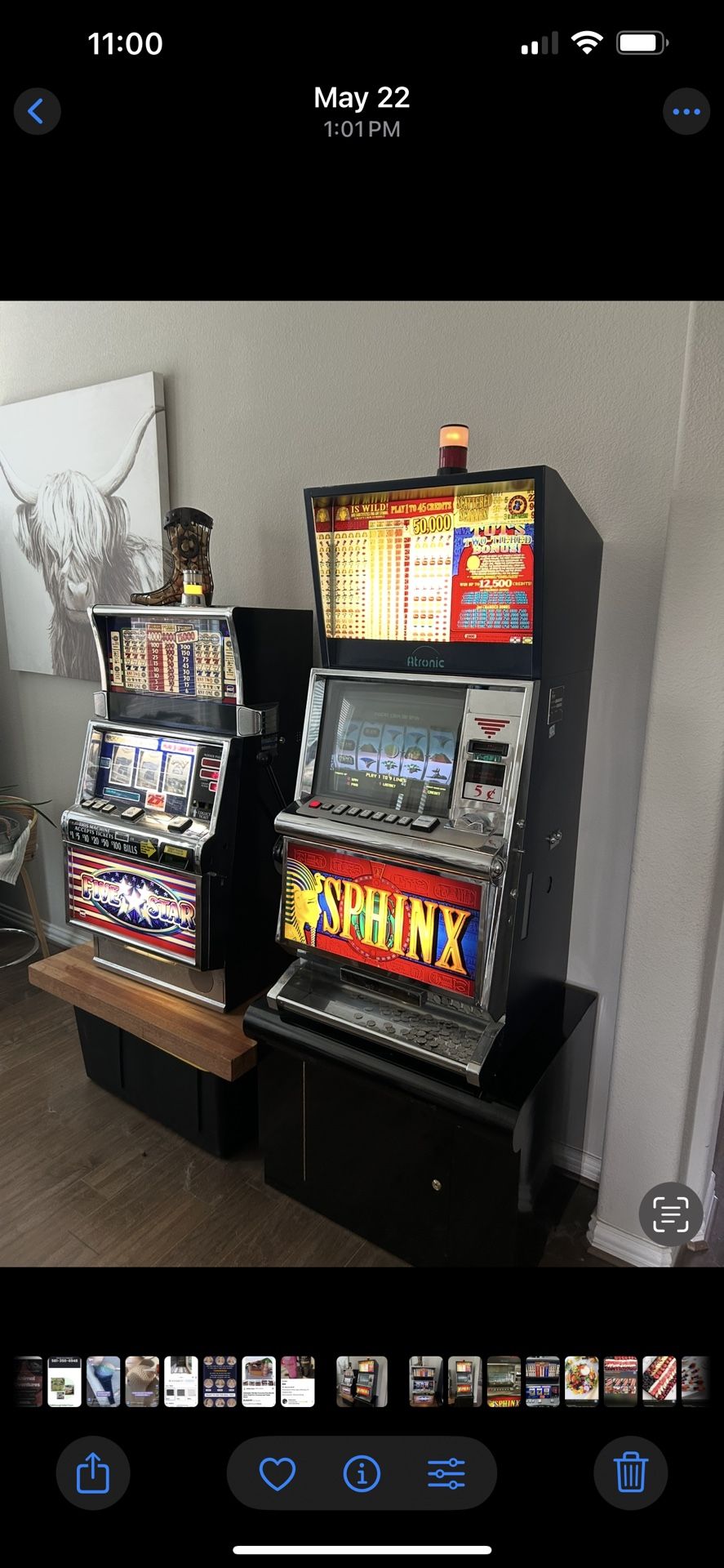 Two Real Casino Slot Machines out of Vegas Casino. 5 Star has an old pull down lever but can also be played via button on the console which is a 25 cent machine. Has keys. The Sphinx machine has multi play with an advance play if you hit the sphinx. The Sphinx Slot Also comes with its original base from Casio has keys. This is a .5cent machine. Last photo is serial# for the Sphinx Slot. $600 each obo or $1k both These are great for game rooms, man caves. Great Family Fun !!! Very Heavy Bring Help to Load. MAKE ME AN OFFER ON BOTH This site has it for $849 https://offerup.co/faYXKzQFnY?$deeplink_path=/redirect/