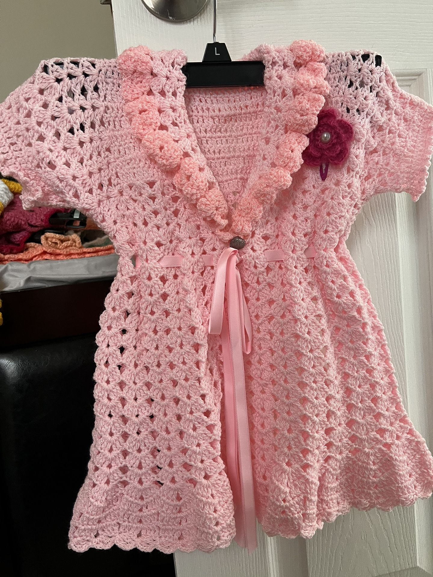 Crochet Hand Made dress for little girl Color baby pink
