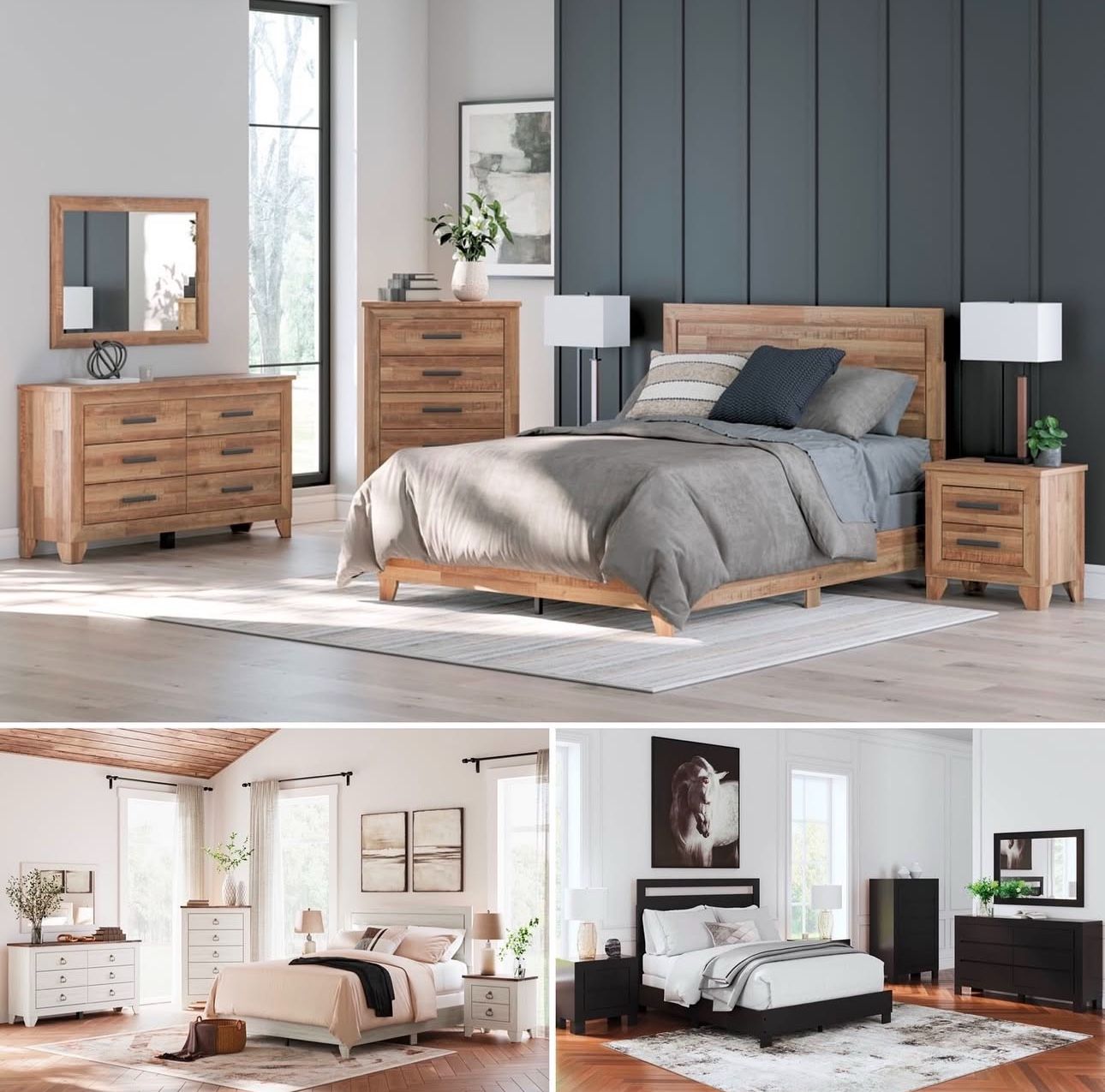 Warehouse distribution, not set up on display. Full set range $679 and up - Queen set range $699 and up king set range $799 and up 4pc set bedframe, dresser, mirror, nightstand, chest 5pc bedroom set add chest Offer Free delivery within Dallas and Fort Worth Only on certain items list within the title Open by appointment Installation is available Financing available 3 months No interest Layaway available