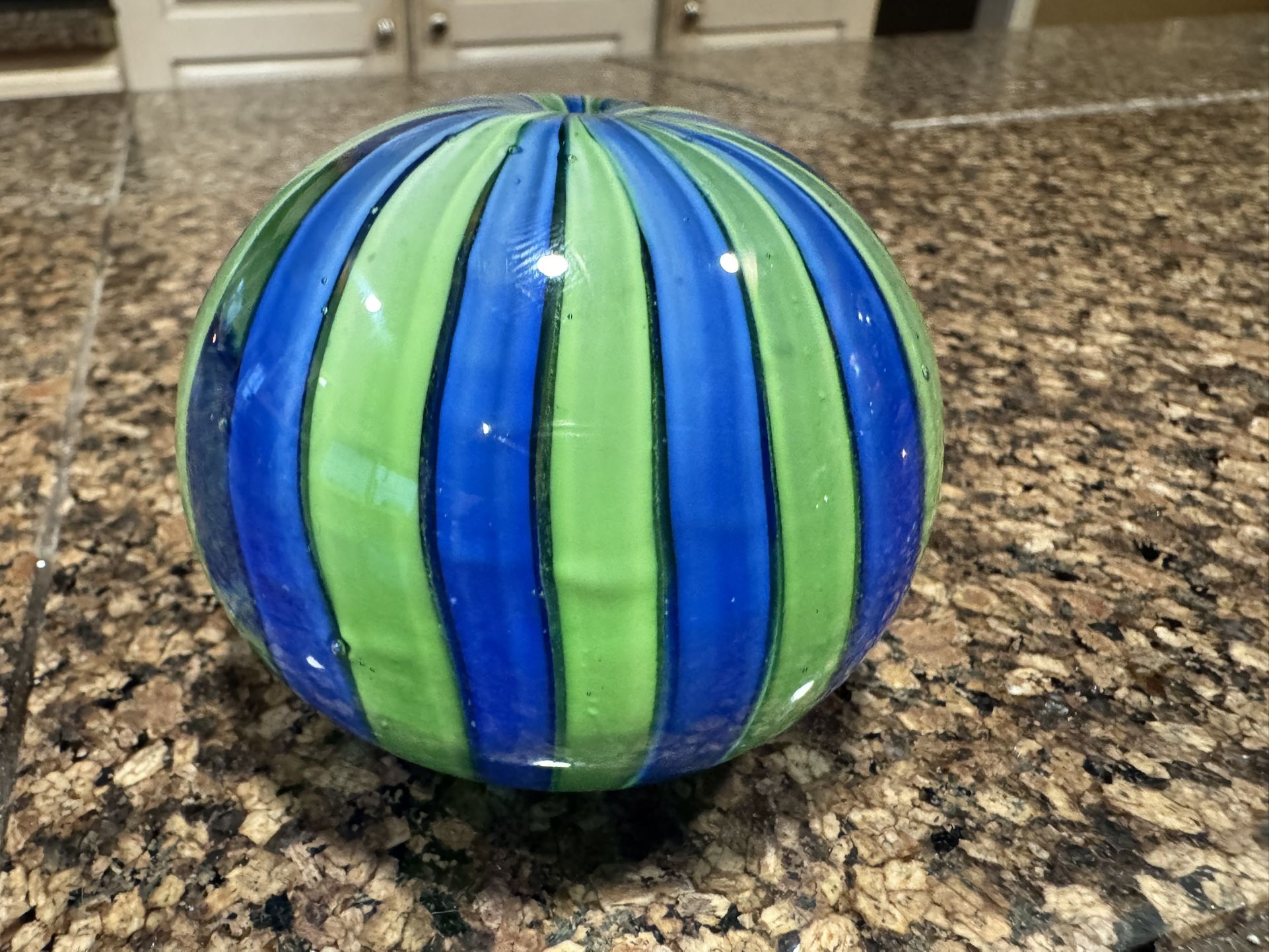 Vintage Paperweight Handblown Art Glass Blue Green Stripes Spiral 3" x 3" $15