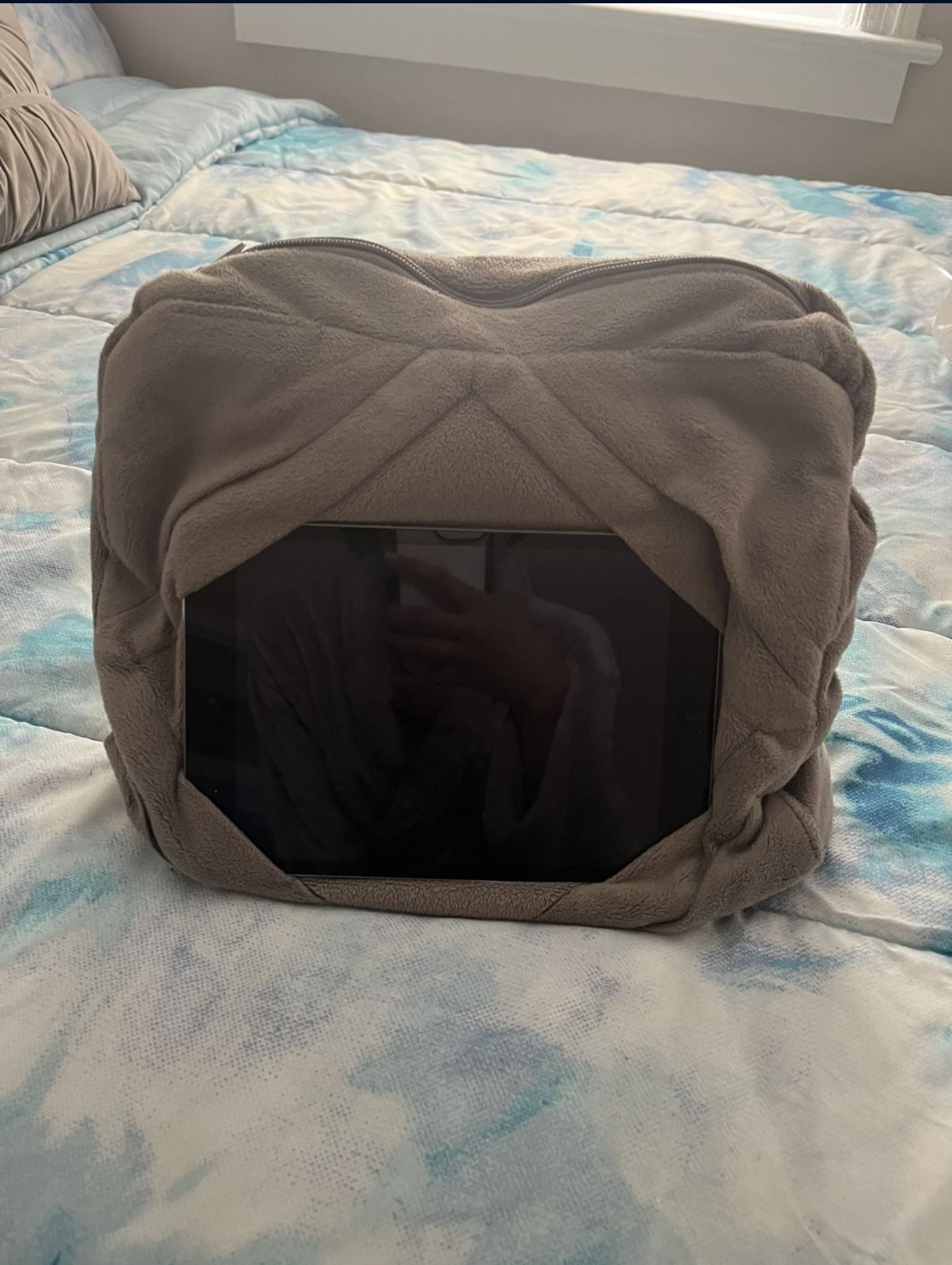 iPad NOT included, pillow CASE ONLY. that is an iPad mini displayed in the picture. the regular-sized iPad/tablet can fit in the bigger parts as well. this is great for kids (also adults) when they are in the car playing games or watching a show! can strap to headrest of car. also great for sitting on laps. much better than regular hard cases. comes with pencil. first come, first served.