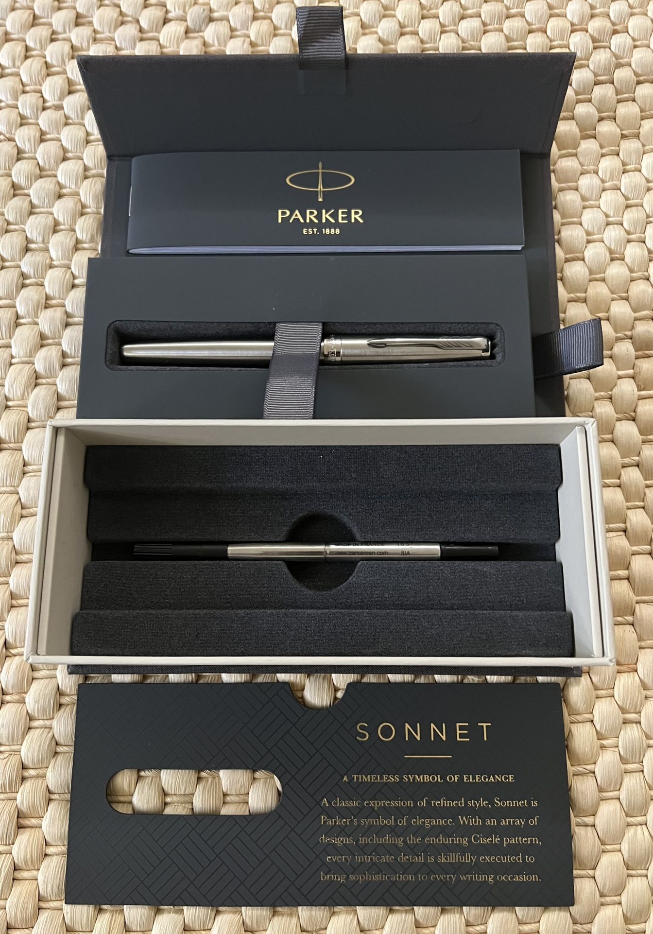 PARKER SONNET SILVER COLOR Stainless Steel ROLLERBALL PEN - Made In France