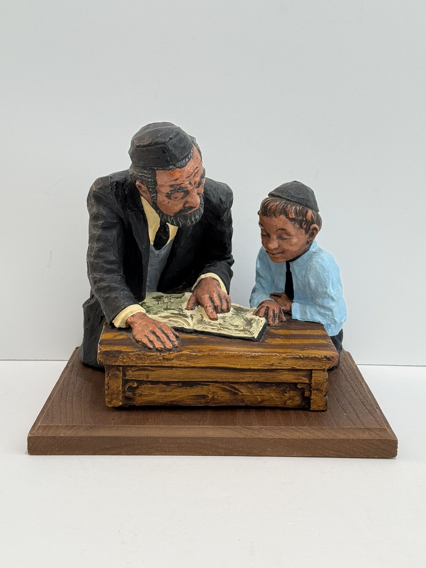 Vintage 1970 David Kaplan "Jewish Rabbi Teaching Boy Torah” Sculpture Limited Edition Series Rabbi and a young student engaged in religious study at a desk 10”L x 8”D x 9.5”H In Excellent Condition