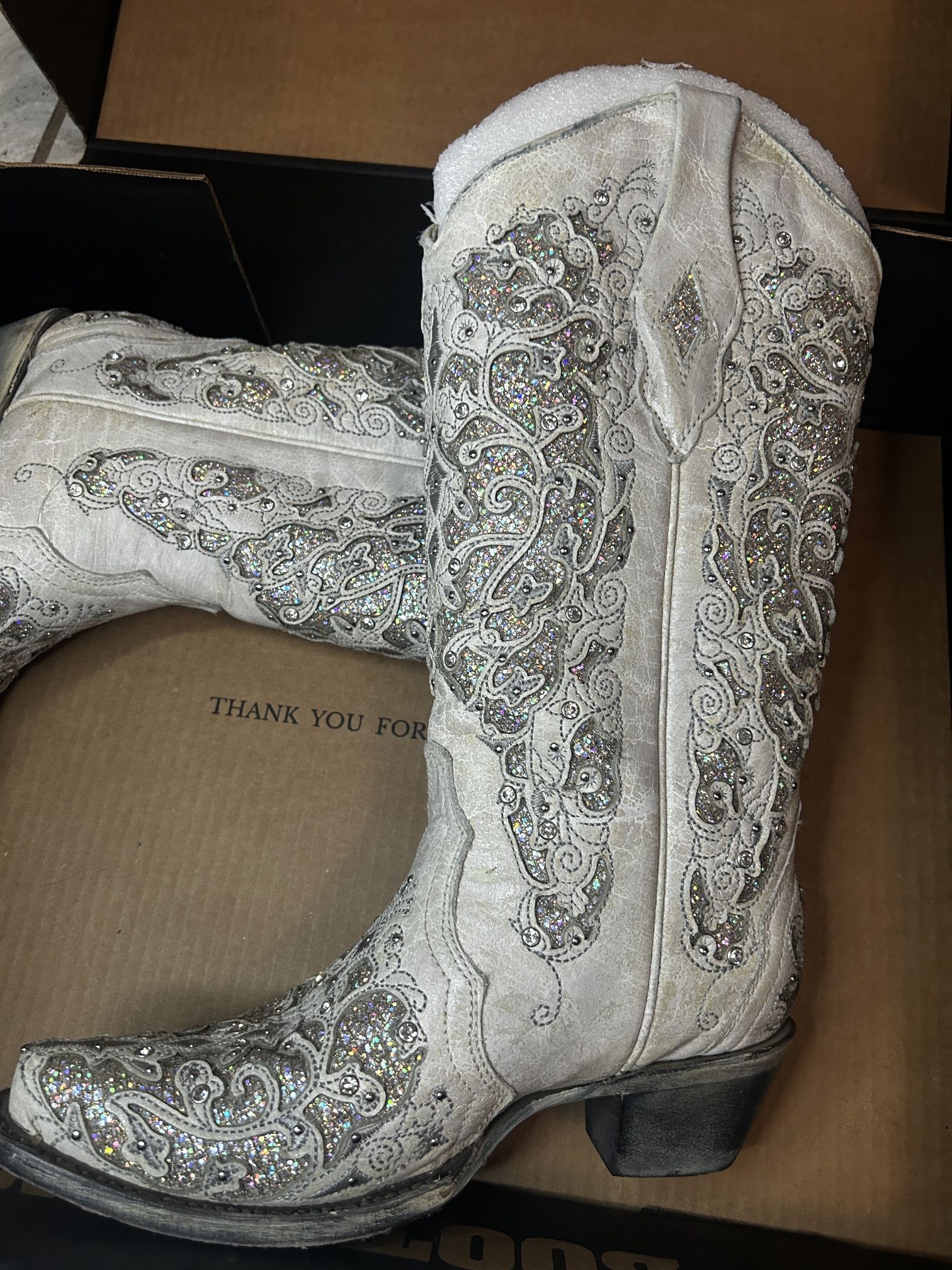 Used a couple times. They shine they sparkle.size 7. Don’t use them anymore. Tell me if interested