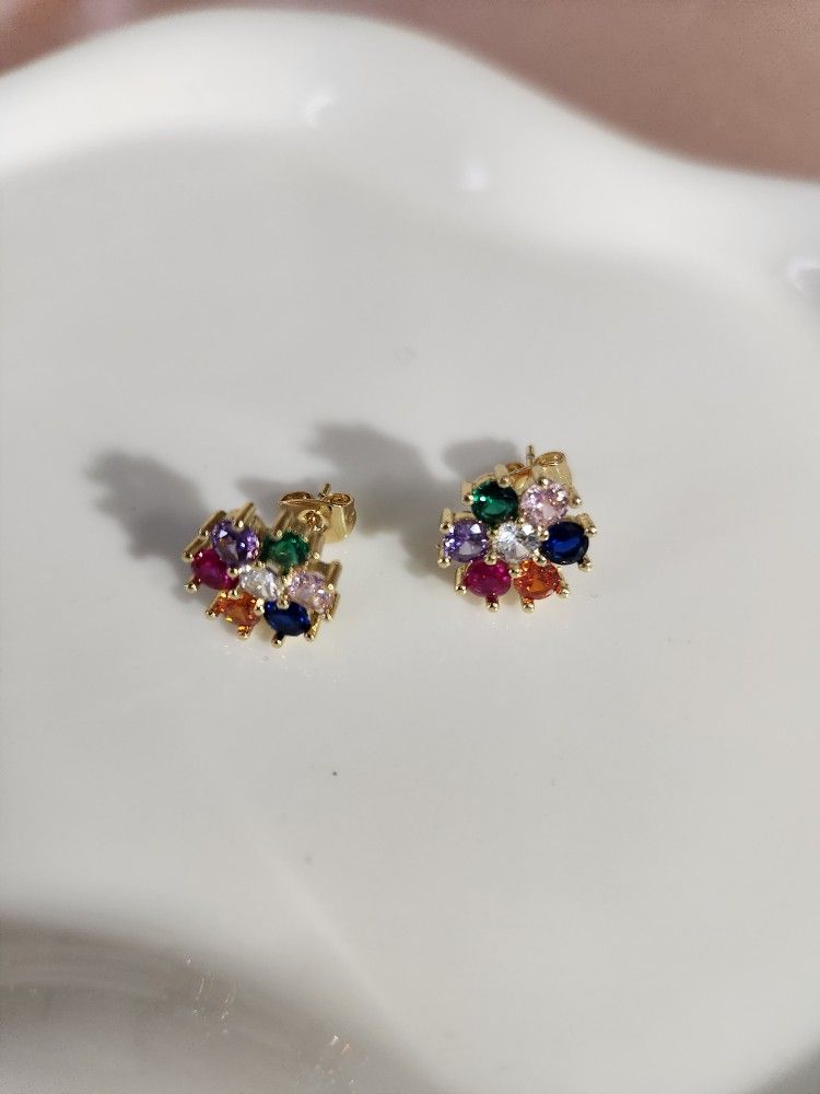 14k Gold Plated Multicolor Stud Earrings