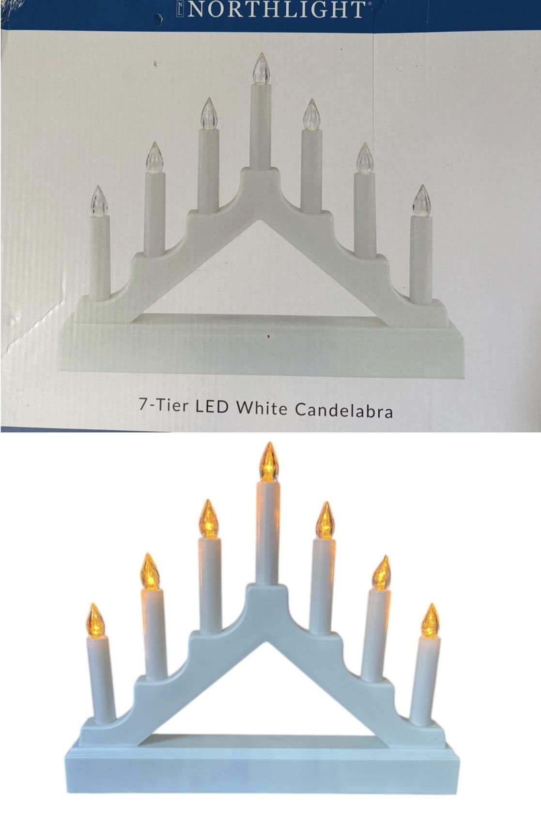 New in box northlight 7 tier LED candle candelabra * Long lasting and energy efficient * LED lights use 90% less energy * White with Amber flicker flame * Requires 2 "D" batteries - not included * Indoor use only * 11"Hx 13.5"Lx2"W * On, off, and timer functions * Box has a few dings but the item is unblemished * Only taken out of the box for pictures. Transform your home into a winter wonderland with this pre-lit candelabra. This modern candelabra features seven tiers of flickering, amber-colored LED lights that will radiate a warm and inviting glow. Whether placed on your mantel or used as a centerpiece on your dining table, this candelabra will bring the magic of the holiday season into your home $18 price firm No holds No returns for fit, if measurements are not included in the description, please contact me **please check out all my listings** Shipping or Porch pick up Plano, Parker and coit 75093 Cash, PayPal, cash app, zelle or venmo accepted Looking for a particular style, gift, or size? I have over 2200 listings for sale,message me for info