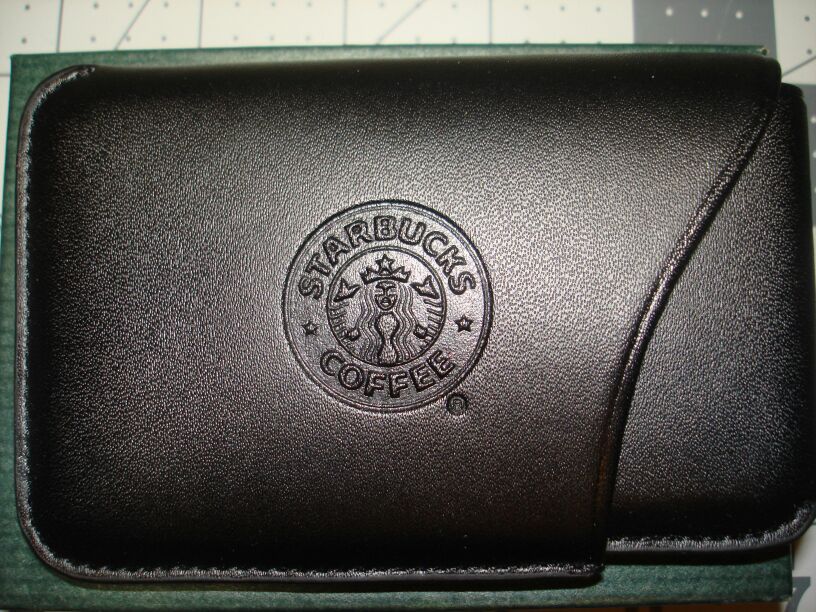 Ultra rare item! New - never used. Slim black two-piece sim leather business card holder with classic Starbucks logo embossing.