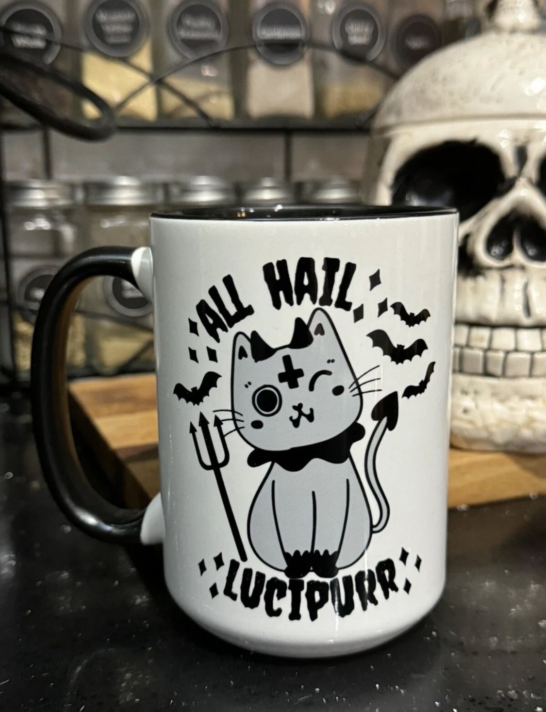 Halloween Mug, Goth Decor, Cat Mug