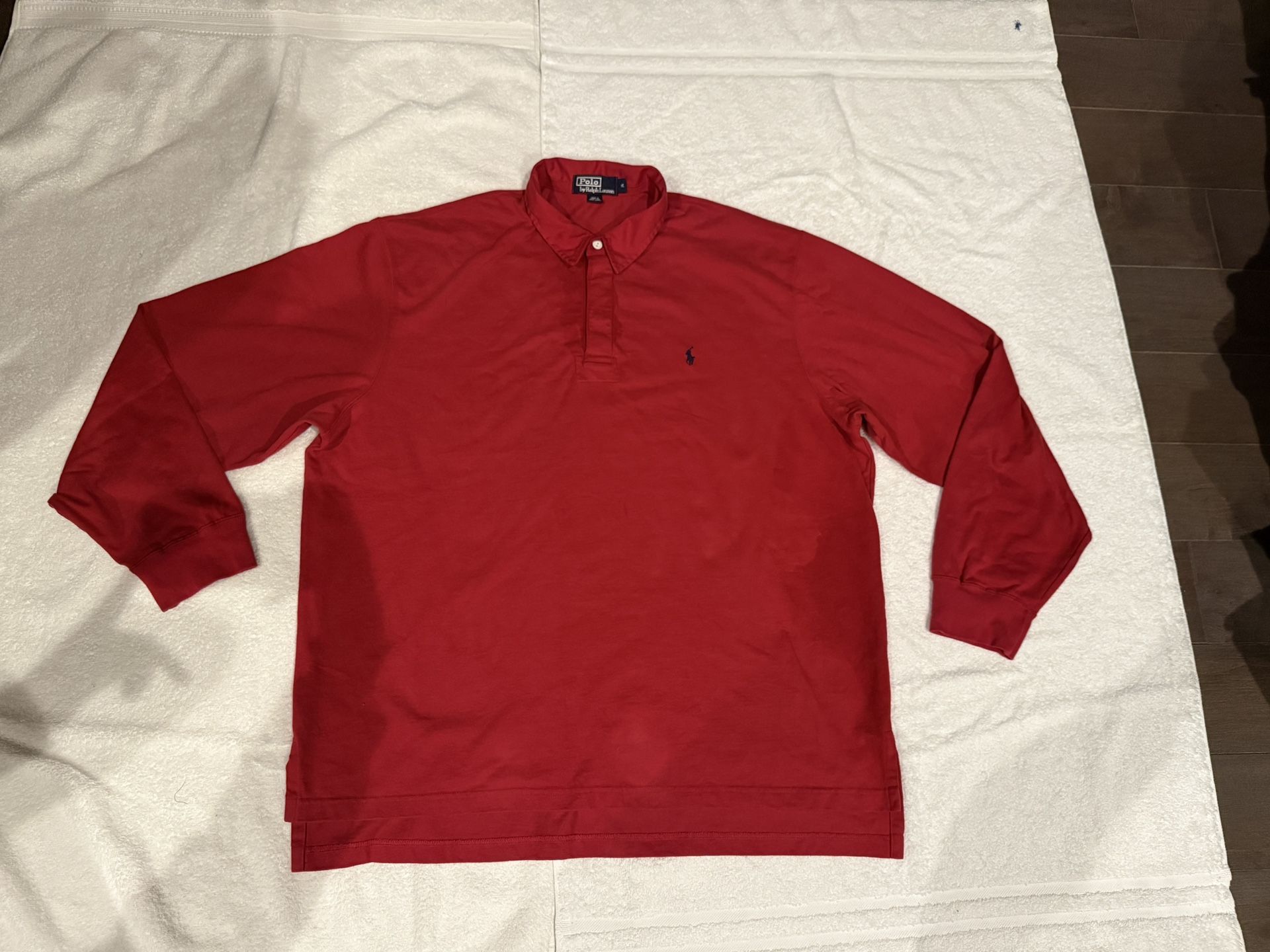 Vintage 90s Mens Polo Ralph Lauren Rugby Polo Shirt L/S, Red, Sz XL, Hong Kong