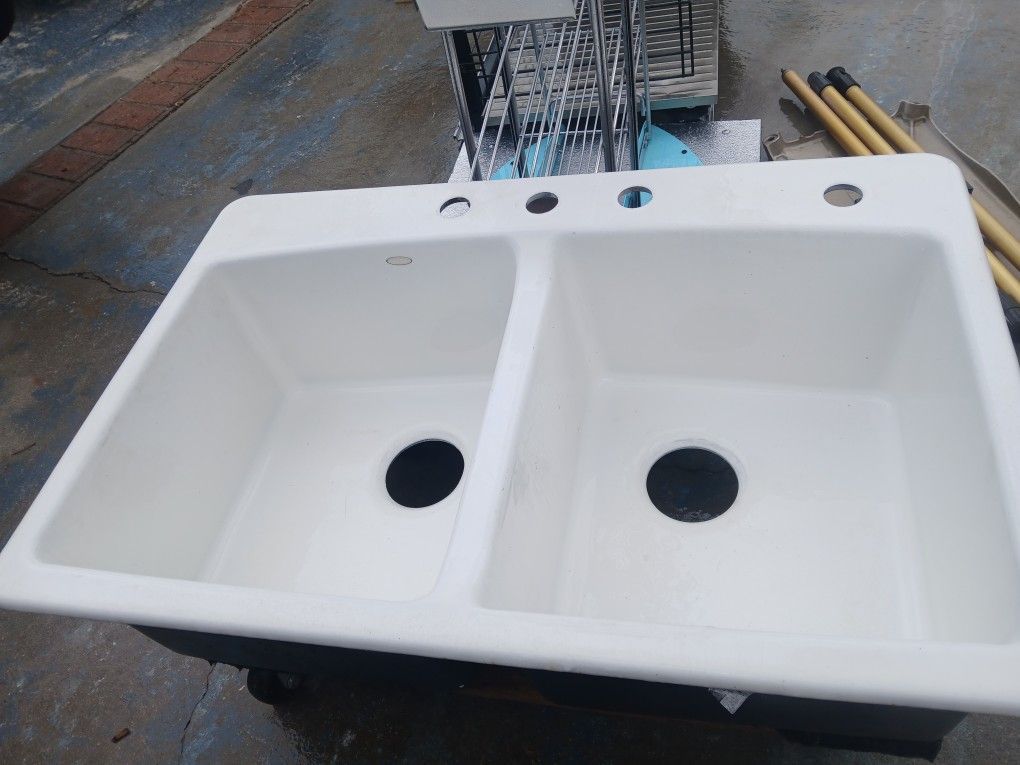 Heavy duty dual cast iron sink basin made by Kohler near flawless condition dimensions are in the photos Similar or less desirable sinks are selling online for upwards of $1,200