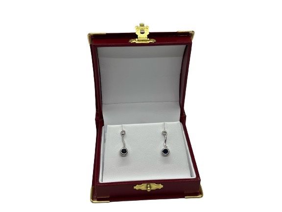 Beauitful 14k WG Sapphire & Diamond Cut Earrings