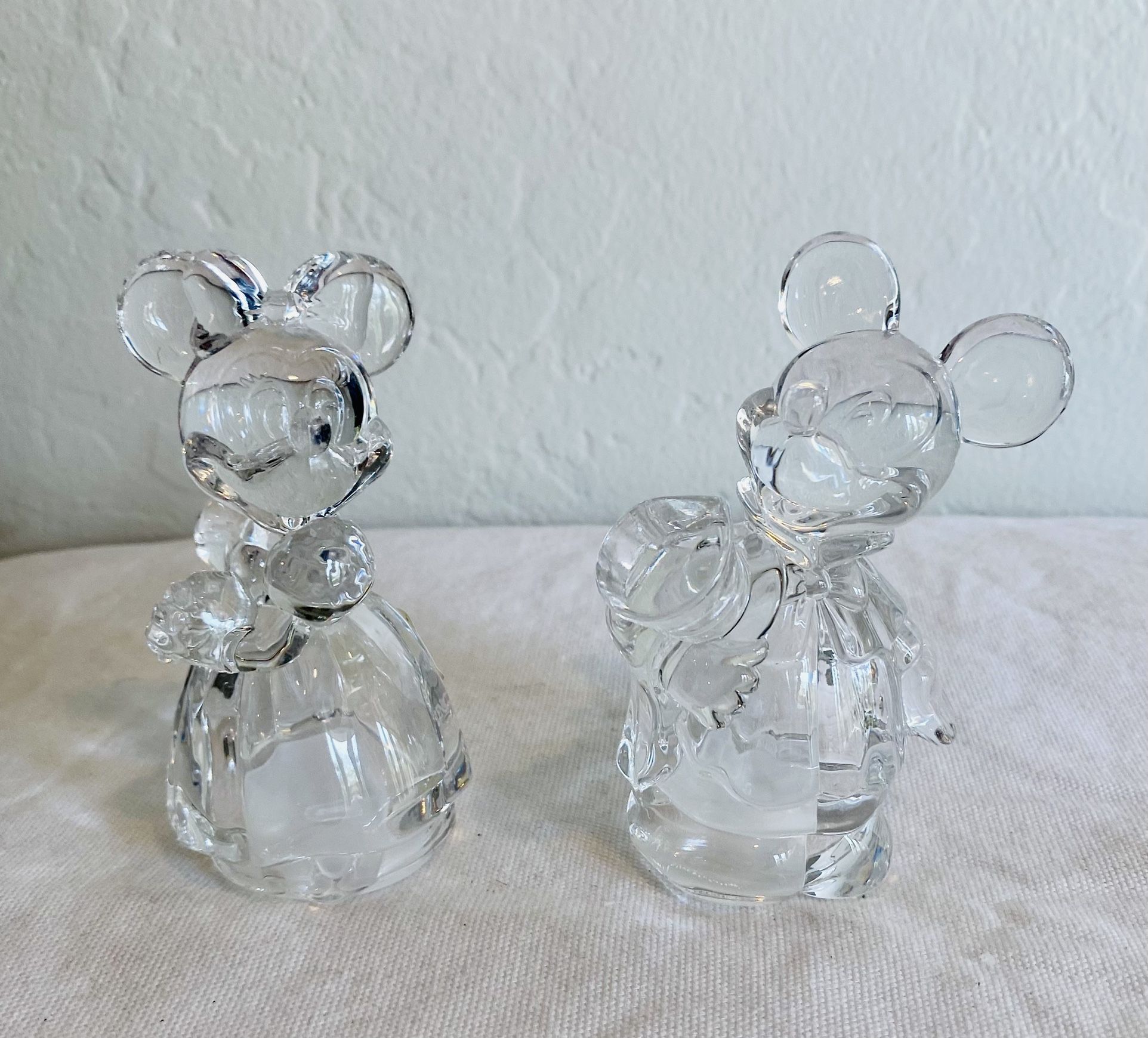 Lenox Disney Mickey Minnie Mouse Crystal Glass Salt Pepper Shaker Figurines