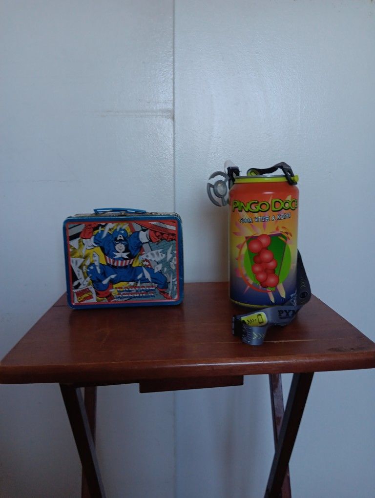 Pens kitchen Giant pingo doce can, never filled before Captain america lunchbox. Needs some cleaning