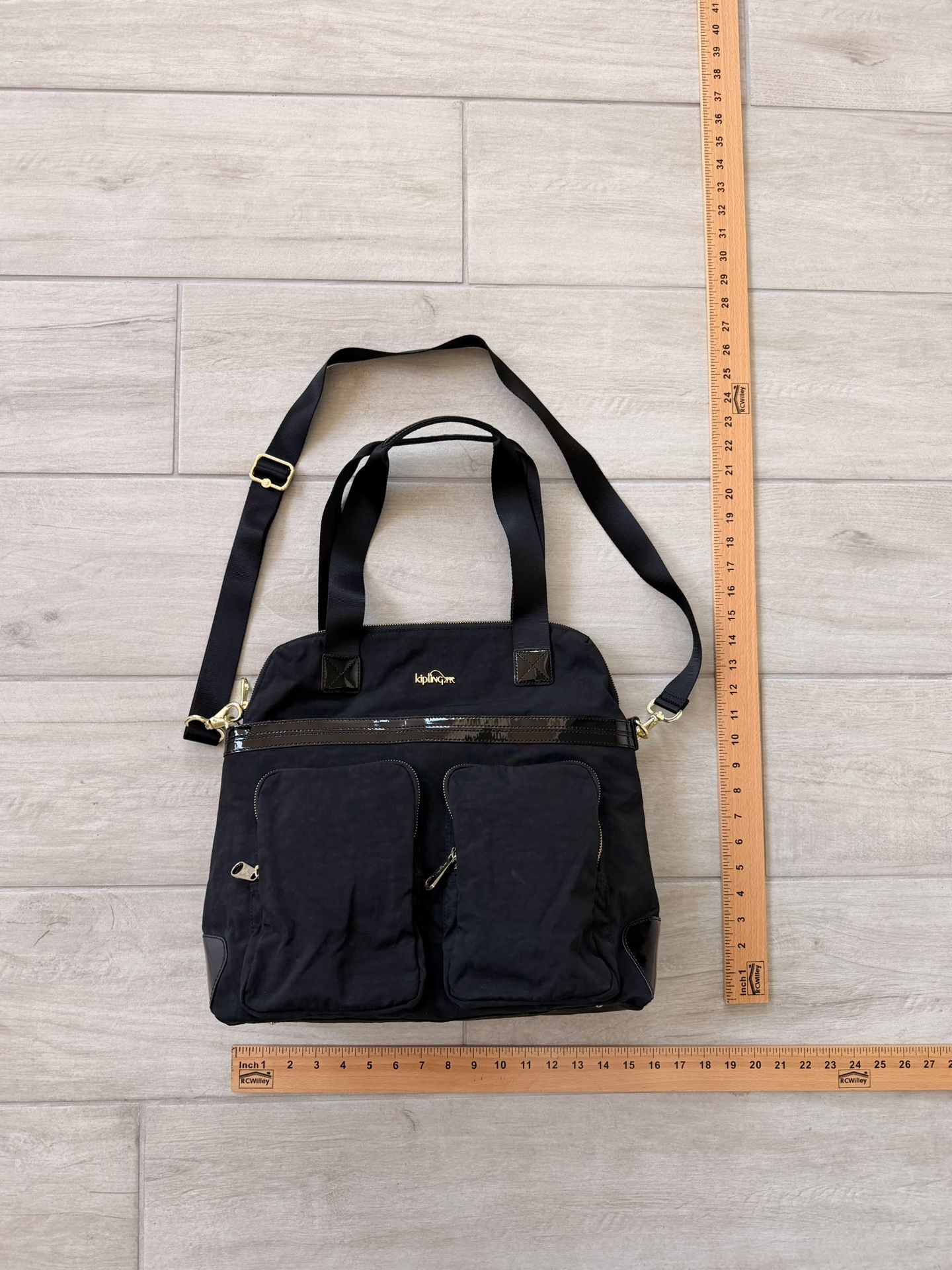 Kipling Camryn Laptop Bag West Las Vegas See My Listings Summerlin Camryn an ideal work handbag, while it's major functionally makes it a sensible solution for travel. This bag is also the perfect anytime you need to tow a laptop around--it's outfitted with a padded, protective laptop sleeve inside Polyester Dual carry handles Adjustable removable shoulder strap 3 exterior zippered pockets Top zip closure Protective laptop sleeve fits up to a 15” laptop 2 slip pockets Color & Hardware: Black nylon with shiny patent-like trim and gold-tone hardware. Design: The bag features two large, curved zip pockets on the front and a zippered top closure for the main compartment. Functionality: It is designed with travelers and professionals in mind, as it includes a padded laptop compartment inside and a trolley sleeve on the back that slides over luggage handles for easy transport. Pockets: The interior typically features two slip pockets and a pen loop for organization.