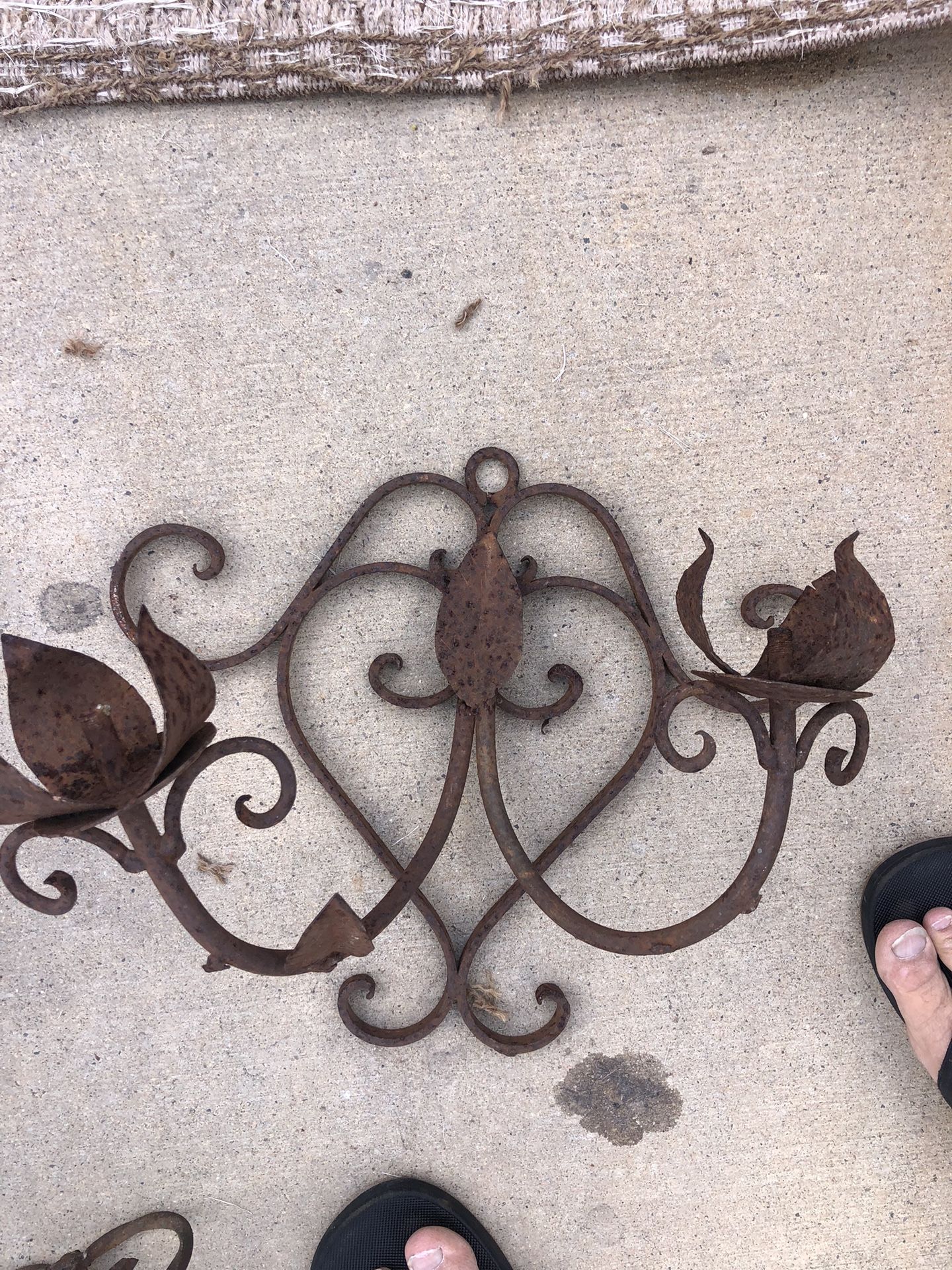 Iron wall plant holder for two potted plants