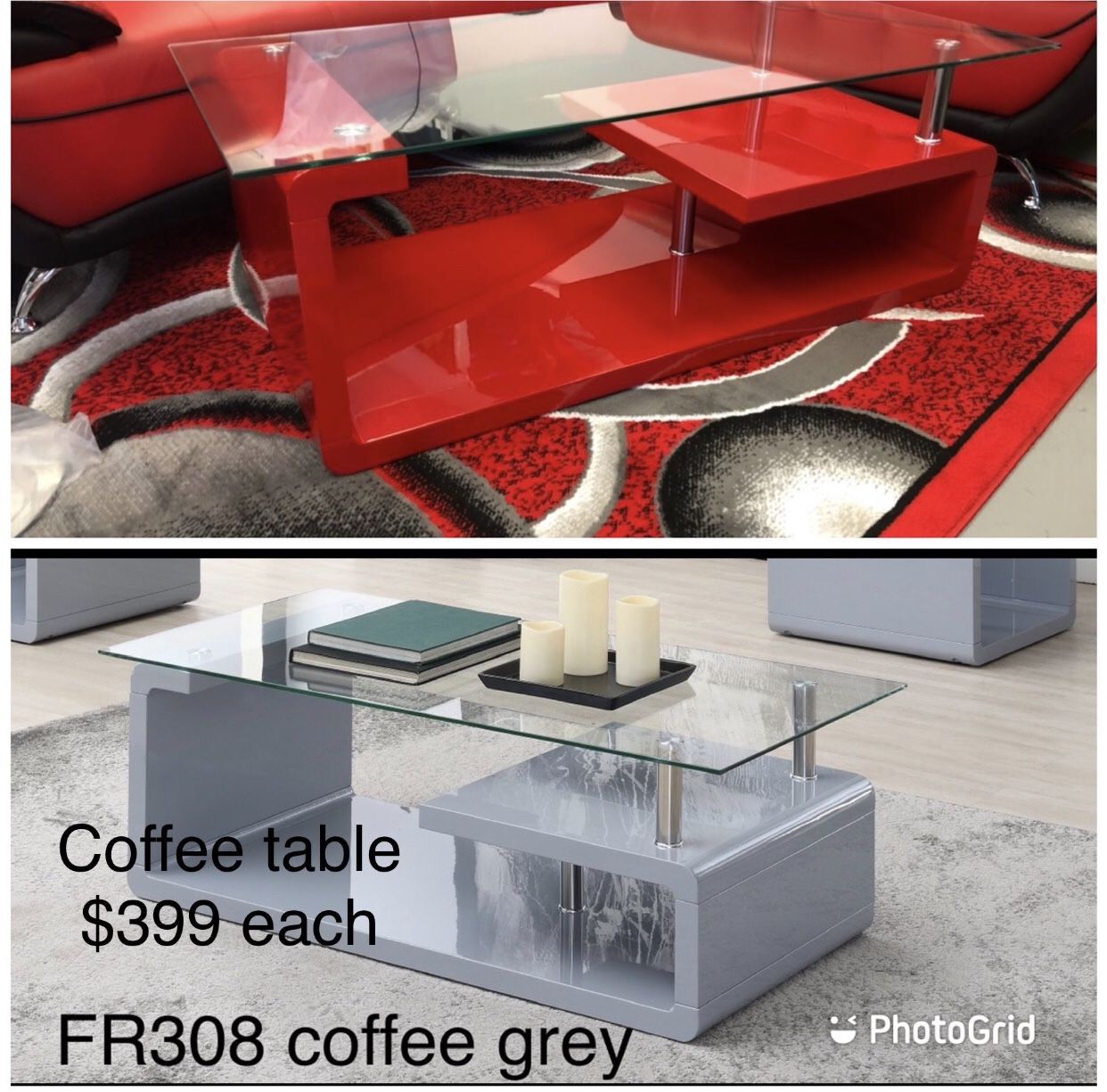 New high gloss coffee glass top table grey or red We finance $39 initial payment Visit Us at 5513 8th Street W Suite 10 Lehigh Limited quantity available Same day delivery available Hablamos español