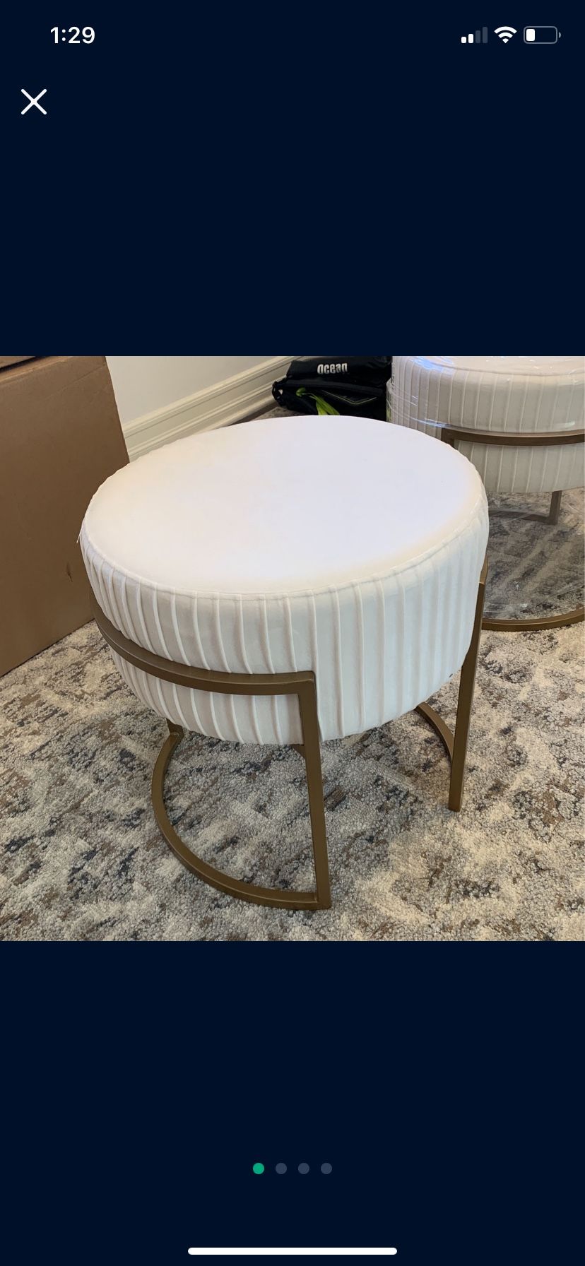 Selling 4 brand new in box ivory and gold stools. Can be used for any decor. They are approximately 20” tall $40 each or all 4 for $150