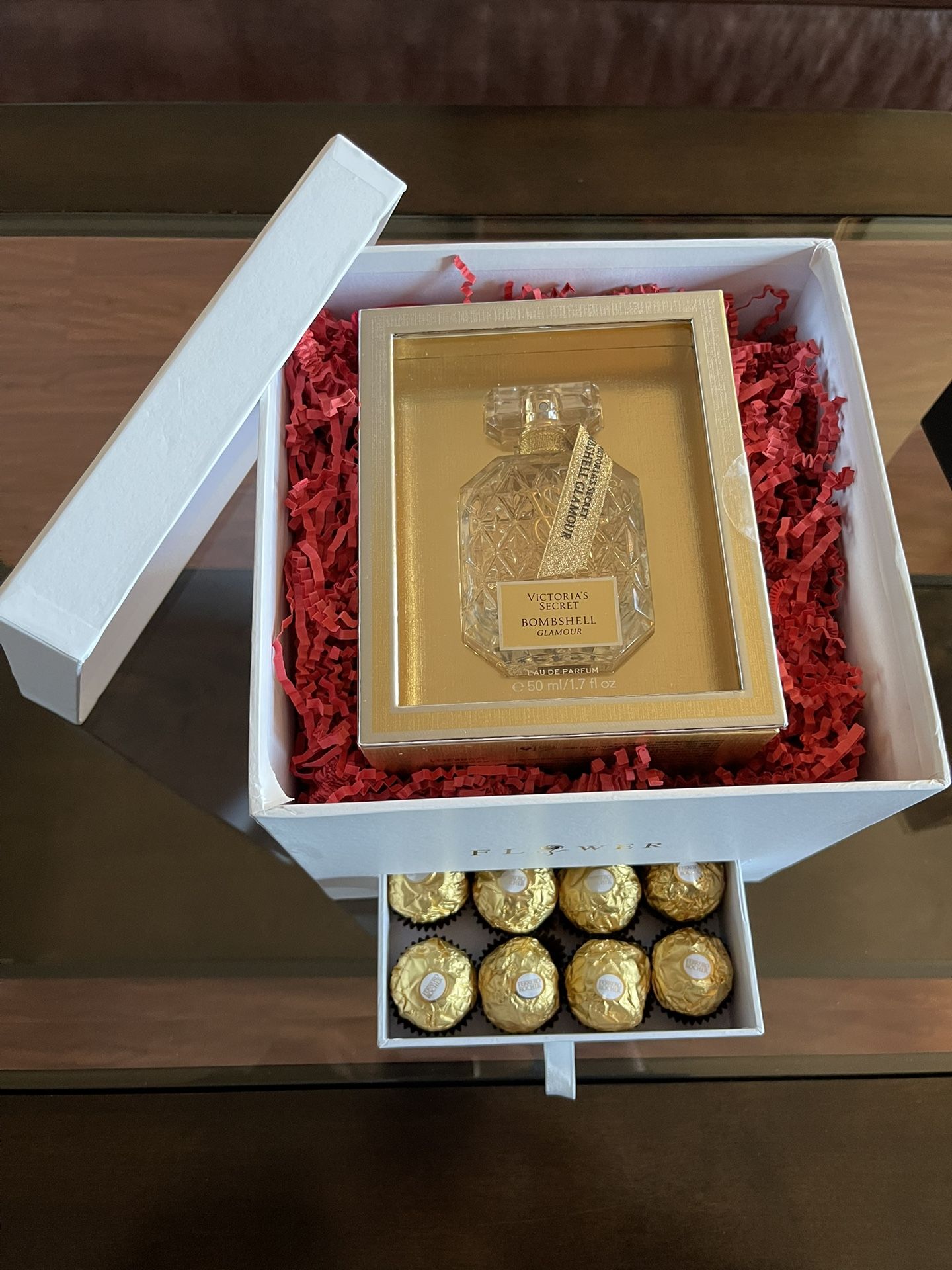 Includes: Victoria’s Secret bombshell and Ferrero Rocher chocolate