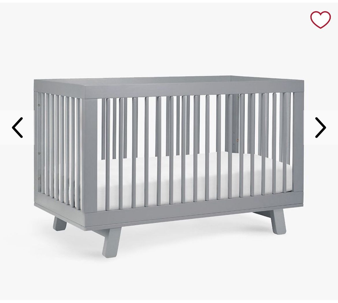 Dresser/changing table, crib and toddler conversion kit for crib in grey