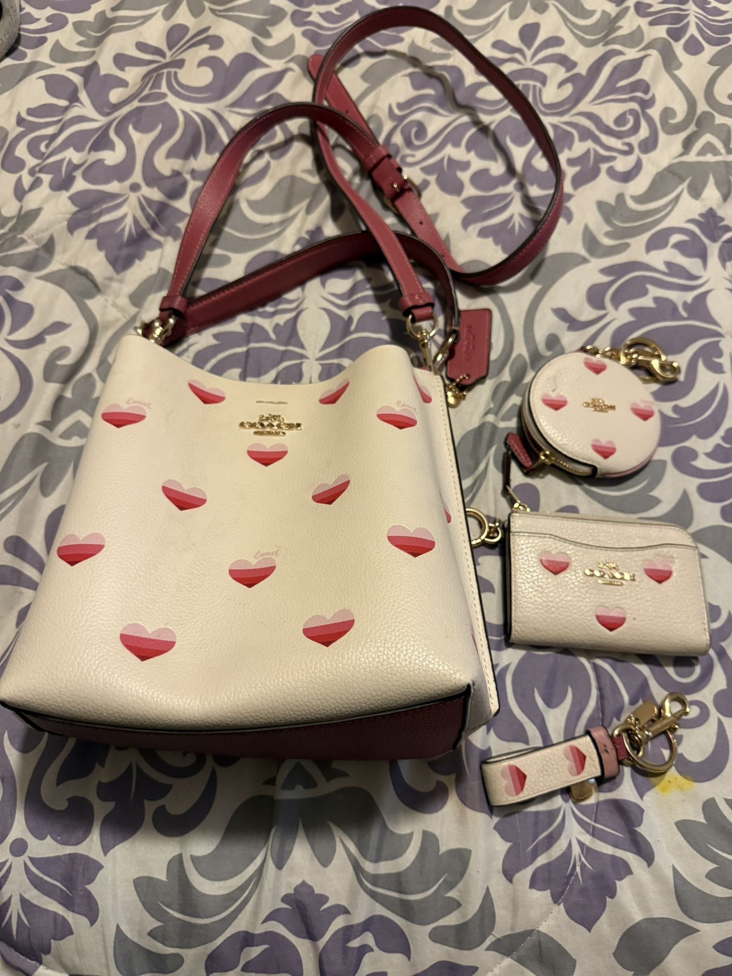 Valentine’s Day inspired Coach purse, wallet, change wallet and key chain