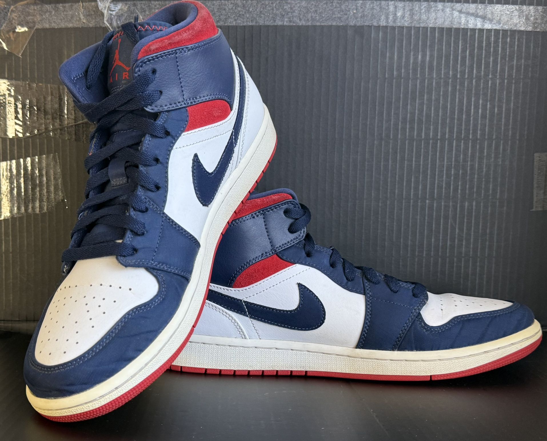 Air Jordan 1 Mid SE USA Olympic 852542-104 Size 10.5 Men Navy Red White Used