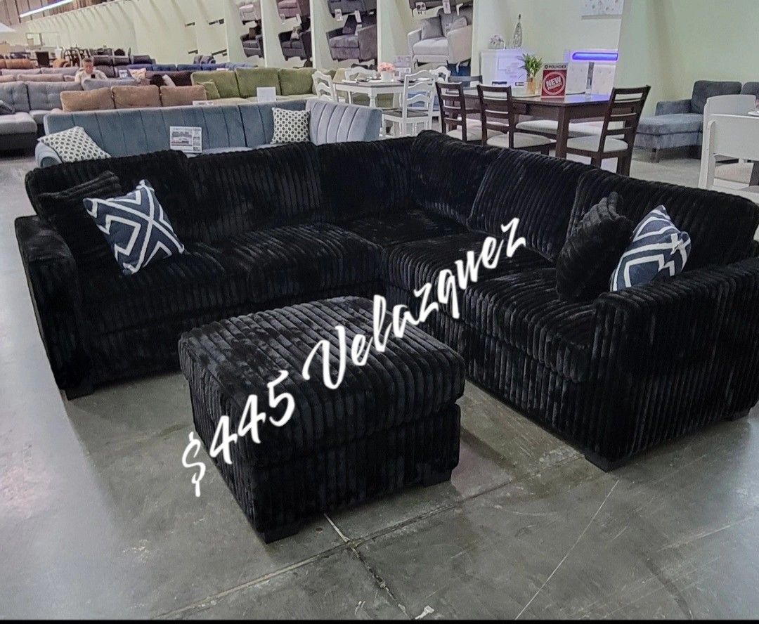 ✅️✅️4 pc Black cordury fabric upholstered sectional sofa with ottoman✅️