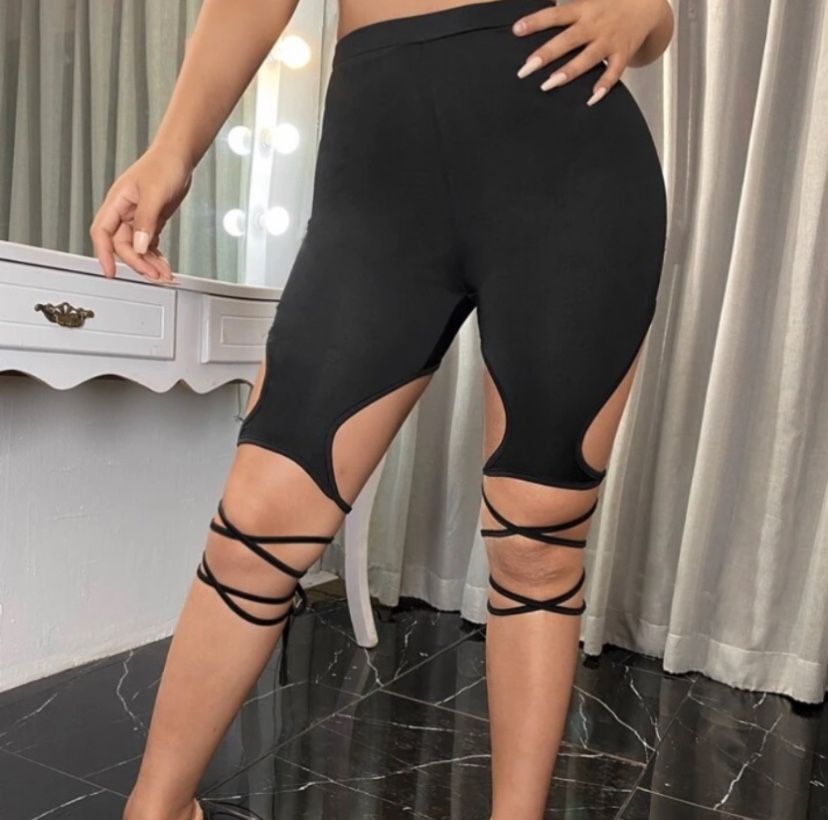 Casual high waist shorts with tie up strings. Impersonates biker style shorts at the front and shorts at the back. Fits true to size. Lots of stretch. 1st model is size S & 2nd model size L. XS(5), S(4), M(2), L(3) $6/piece or ALL for $65!