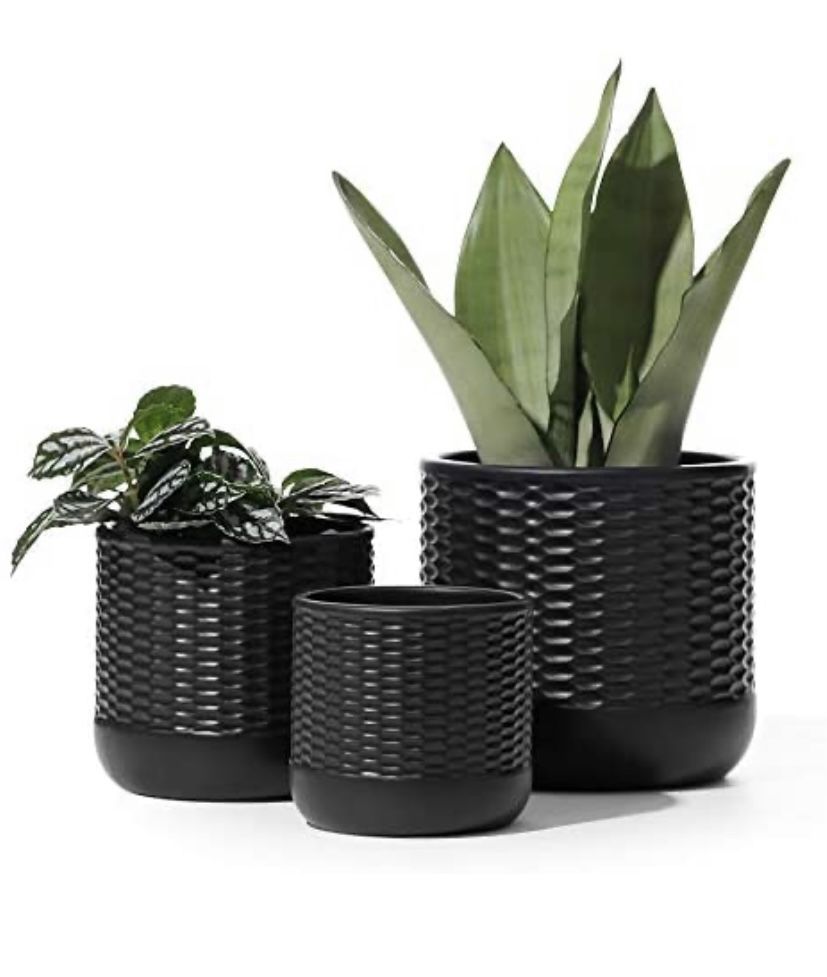 DIMENSIONS- This set comes with3 sizes plant pots included. Large one with 6” OD+5.5” ID+5.8” H. Medium one with 5” OD+4.6”ID+4.8”H. Small one with 4”OD+3.5” ID+4”H. Which can meet your all needs to plant different plants, that will be the new home to your cactus, orchid, or succulents! You can also hanging them with plant hanger for your hanging planters. PERFECT BOTH FOR INDOORS & OUTDOORS - This set of flower plant pots are designed with matte finishing exterior in soft. They will look great both inside your house, on a windowsill, desktop, shelf, bedroom, kitchen, office or living room table or outside in your little garden on the porch or balcony. EASY DRAINAGE SYSTEM - This planter pot won’t make a mess on your desk! The pot has a drainage hole, on the bottom and comes with plugs that won’t let the excess water spill over. Your furniture is safe, just tilt it and let the water out. Please check out my other items. Thank you