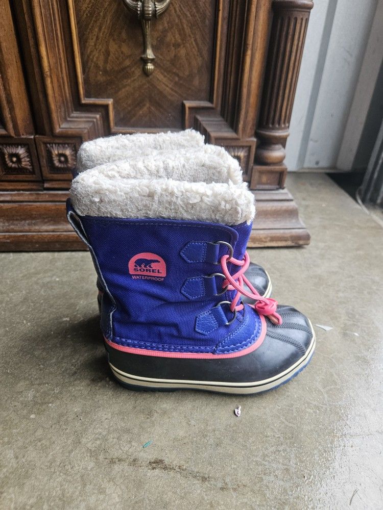 Sorel Kids Waterproof Snow Boots Size 2 Blue Pink Winter Insulated Boots