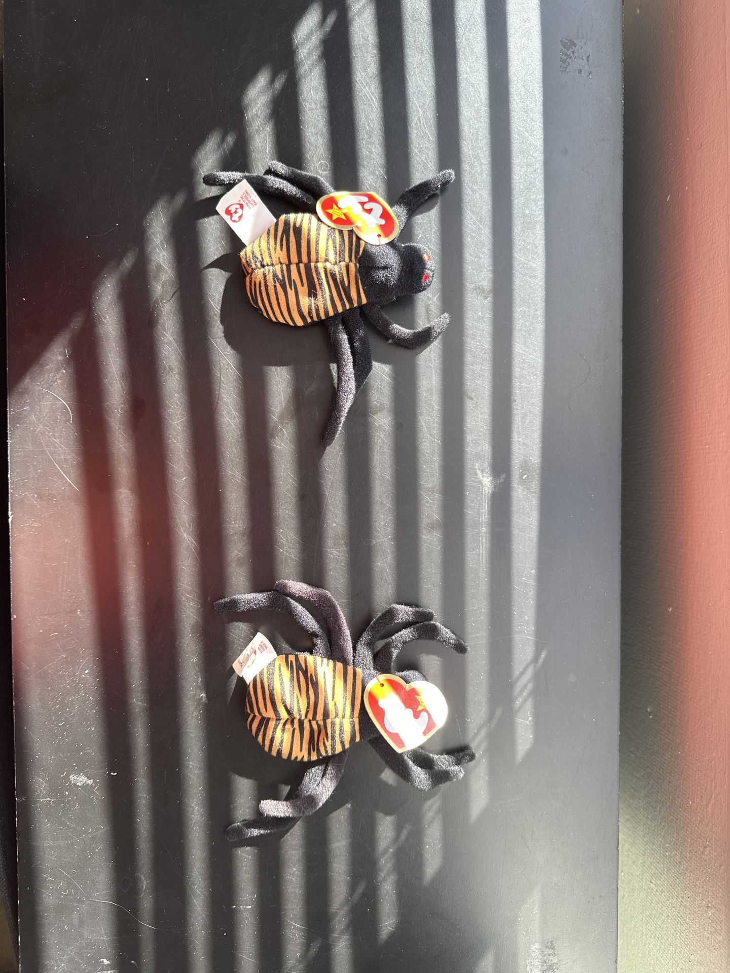Selling a lot of 2 Ty Beanie Babies “Spinner the Spider.” Both spiders feature: • Original Ty heart tags attached • Classic black body with orange striped back • Bright red eyes • Soft plush material Condition: Both are clean and in good shape. Tags are attached and intact (see photos for details). No major rips or damage. Perfect for: ✔ Beanie Baby collectors ✔ 90s nostalgia fans ✔ Halloween decor ✔ Gifts or display pieces Sold as a pair. Message me with any questions!