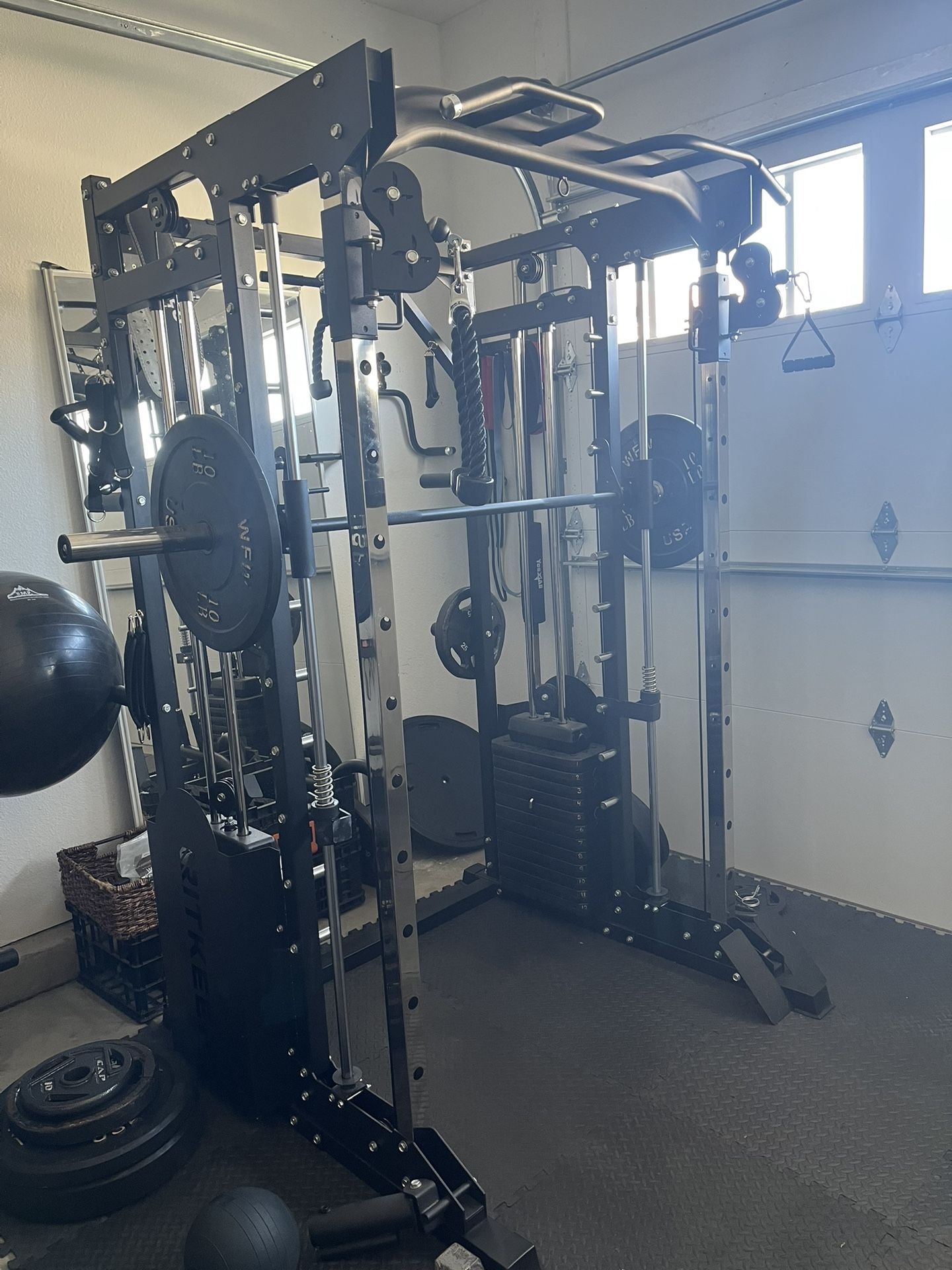 Smith machine Cable pulls Cage weight rack $1,500 or best offer You will need to come with tools and disassemble It can be moved as two main pieces and then parts