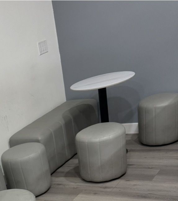Normal use There are 12 round stools, priced at $70 each, approximately 40 cm high. There are 2 rectangular benches, priced at $100 each, about 70 cm long. There are 6 small round tables, priced at $100 each, approximately 70 cm high and 60 cm in diameter.