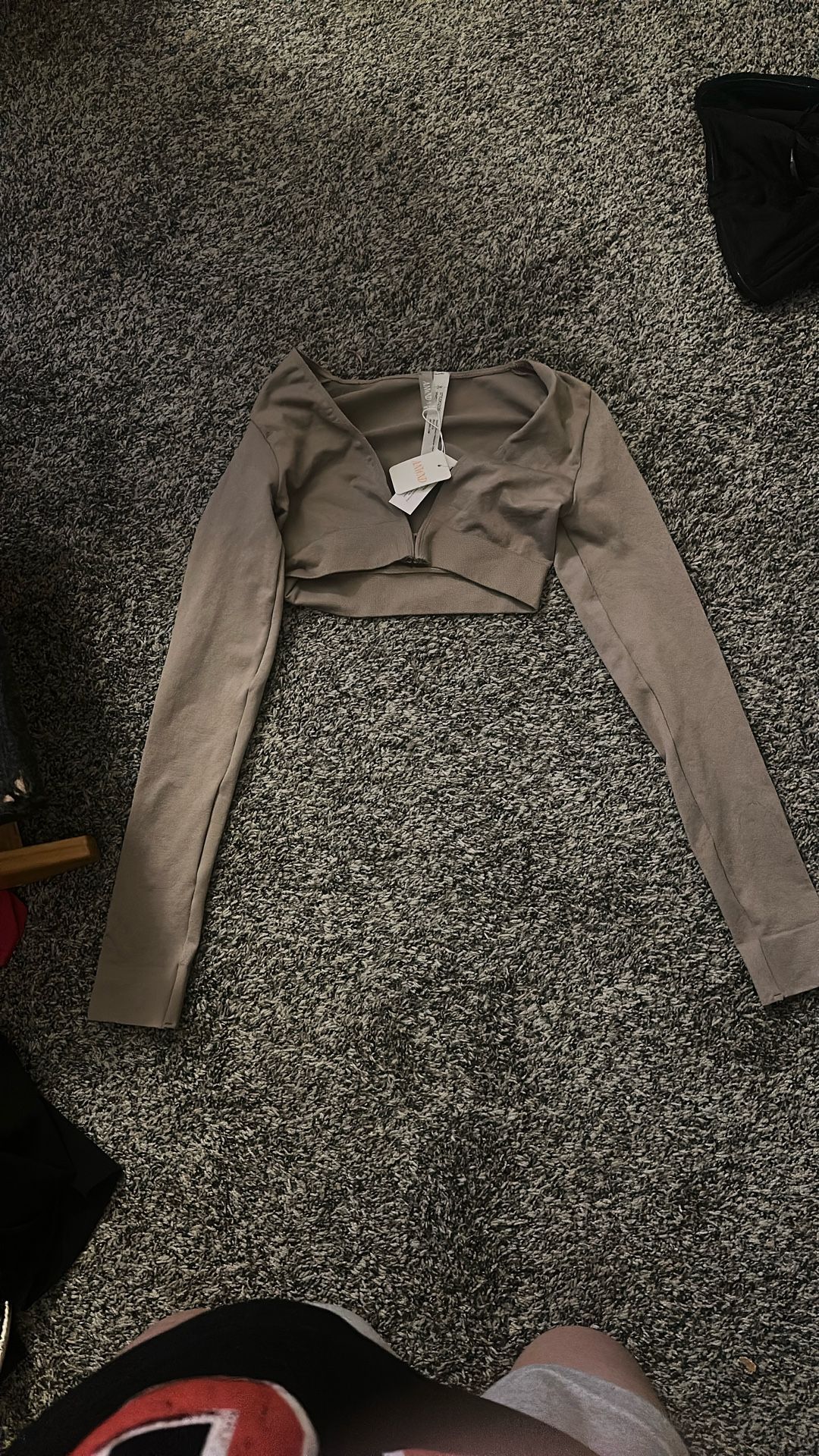 Brown Long Sleeve Crop Top with low cut size small/medium