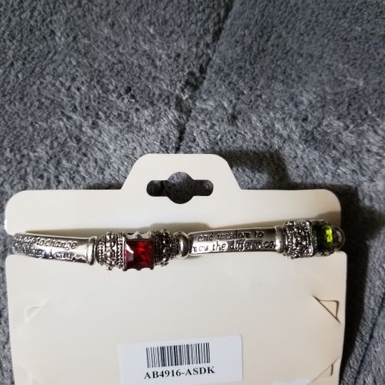 Ruby, peridot, topaz and amethyst color stones. Stretch bracelet with prayer engraved between stones. Includes "Serenity Prayer" bookmark. Please click on my name and check out my other items. I specialize in custom-made jewelry and fused glass items. My husband does custom-made wood items. Message me for additional information. ☄☄We now accept credit cards with Square with a $15 minimum total order.☄☄