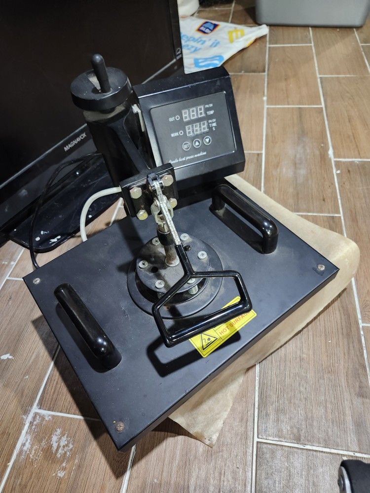 Heat press machine, slides sideways 12 x 12 in, includes all attachments such as 2 size mugs, cap, plates all included and never used