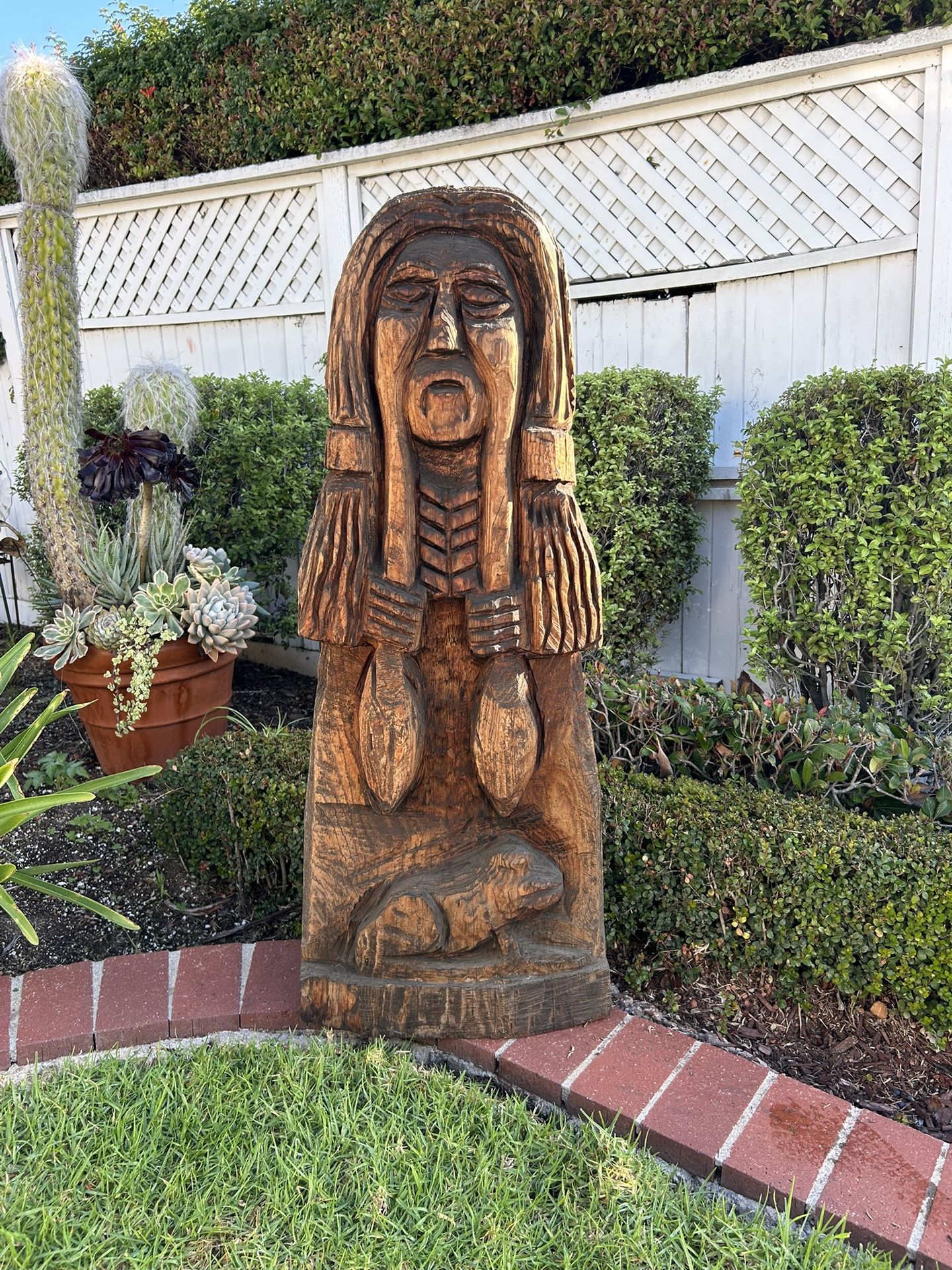 Vintage Native “Weeping Chief” Hand Wood Sculpture 41" tall Huge Statue Western Warrior Collectible Handcrafted