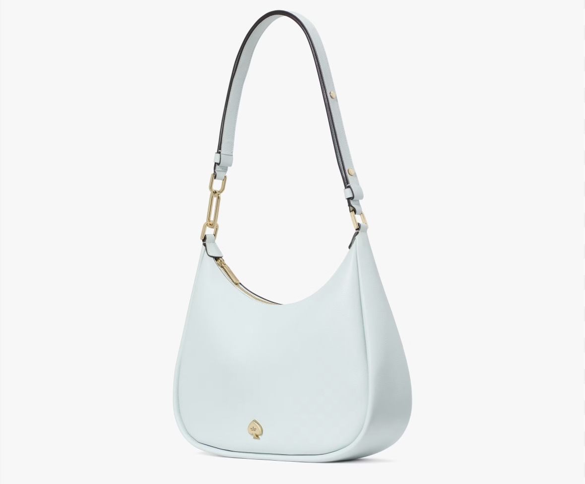 Discover the perfect blend of elegance and modern style with this Stunning shoulder bag from kate spade. Featuring a chic hobo silhouette and gold-tone hardware, this bag is designed to complement any outfit with its sophisticated charm. Color is hazy morning.