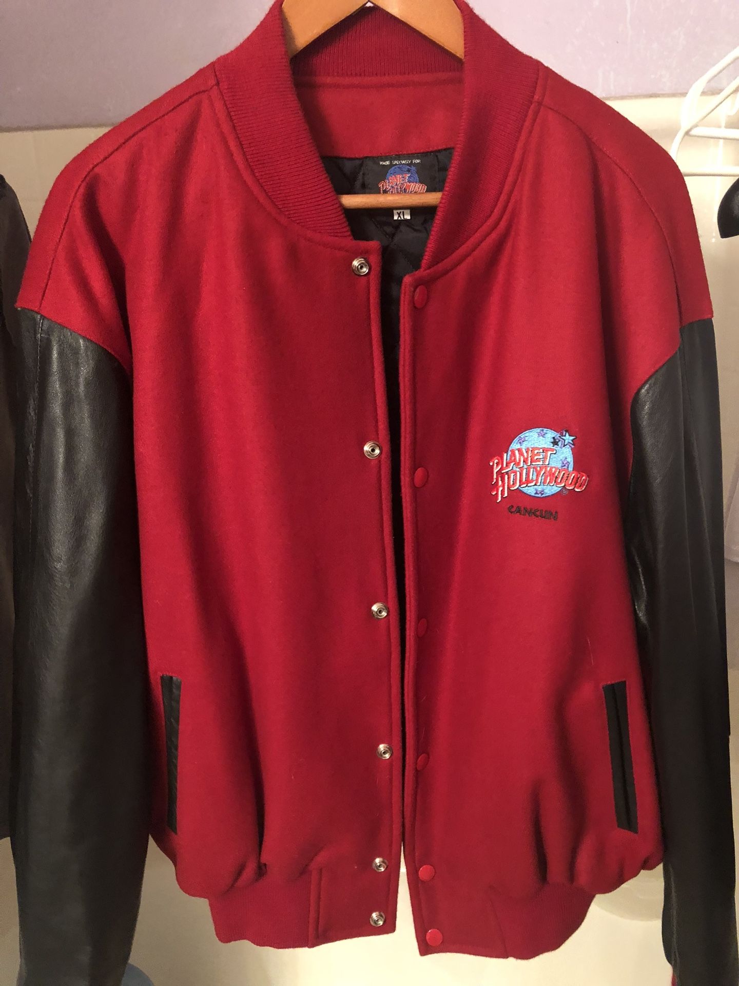 Planet Hollywood Cancun leather wool bomber jacket men’s XL