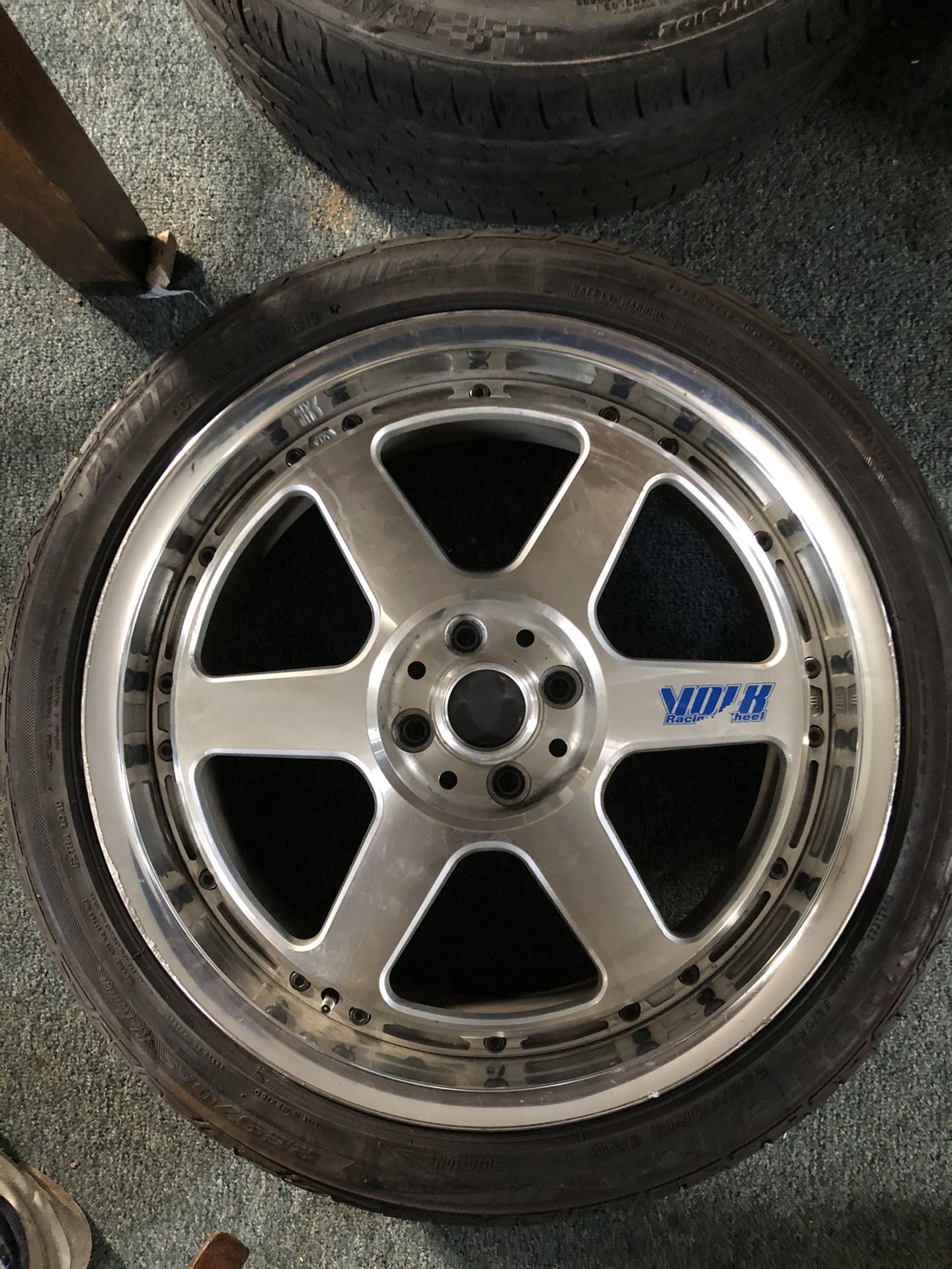 Set of 4 genuine 2 piece Rays Volk GTP wheels. 18x7.5 with 225/40/18 tires. Rare Discontinued wheels. Will fit Honda/Acura and any car with a 4x100 bolt pattern. Send offers! With center caps