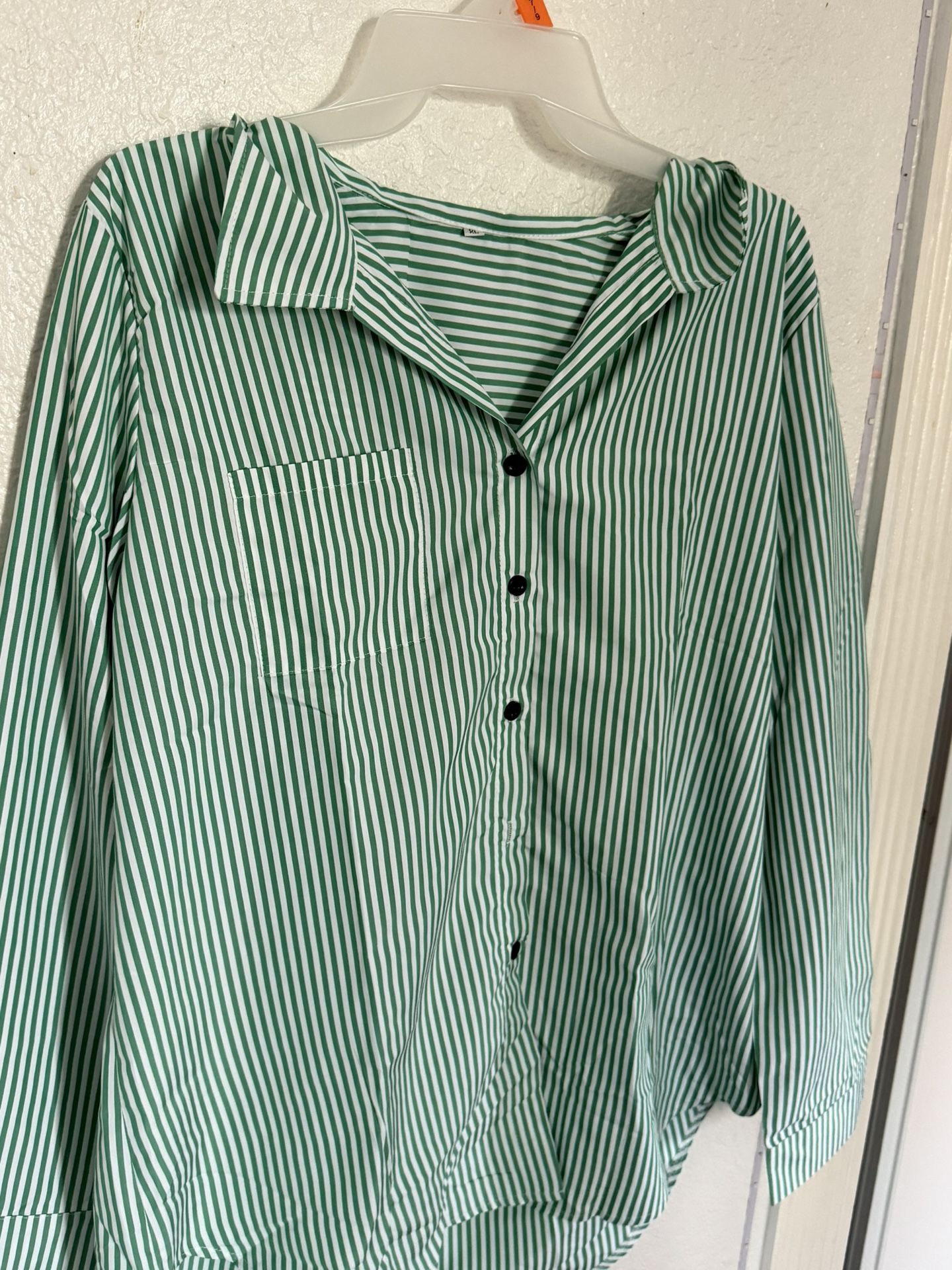 Brand new, never worn Green striped pattern Women’s L/XL Casual or work-appropriate style, easy to pair with jeans or skirts (More clothing in my profile)