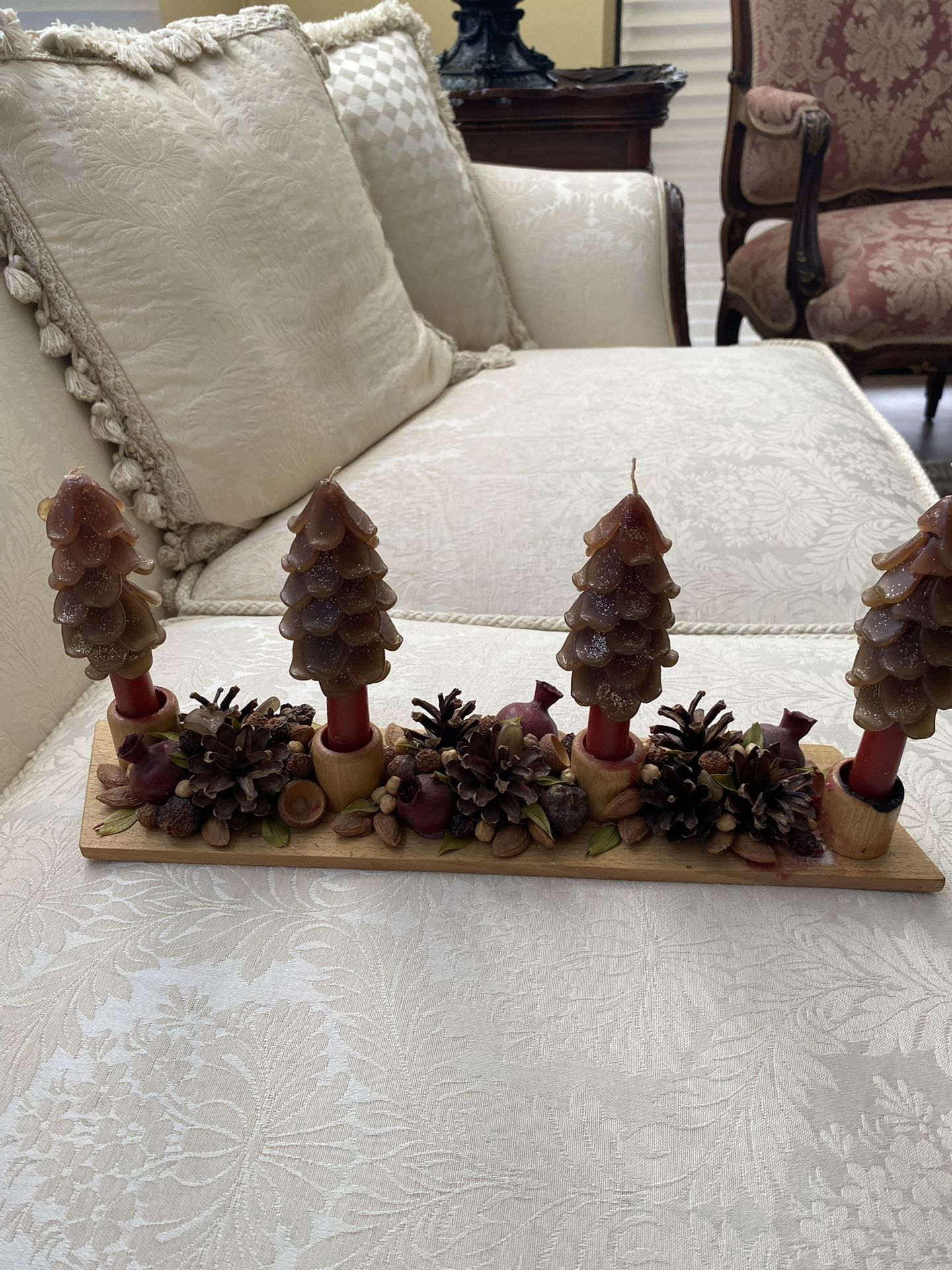 4 Christmas Candle Trees With Handmade Wooden Holder