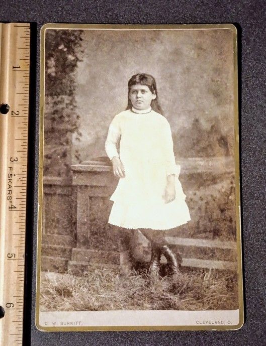 1890's C. W. Burkitt Cleveland Ohio Photo Girl Child Portrait Picture Cabinet Card Antique Original Collectible OOAK One Of A Kind A-1